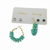 Toptan Altın Renk Turkuaz Boncuk Şık Düz Pollyanna El İşi Kombin Küpe – 2256