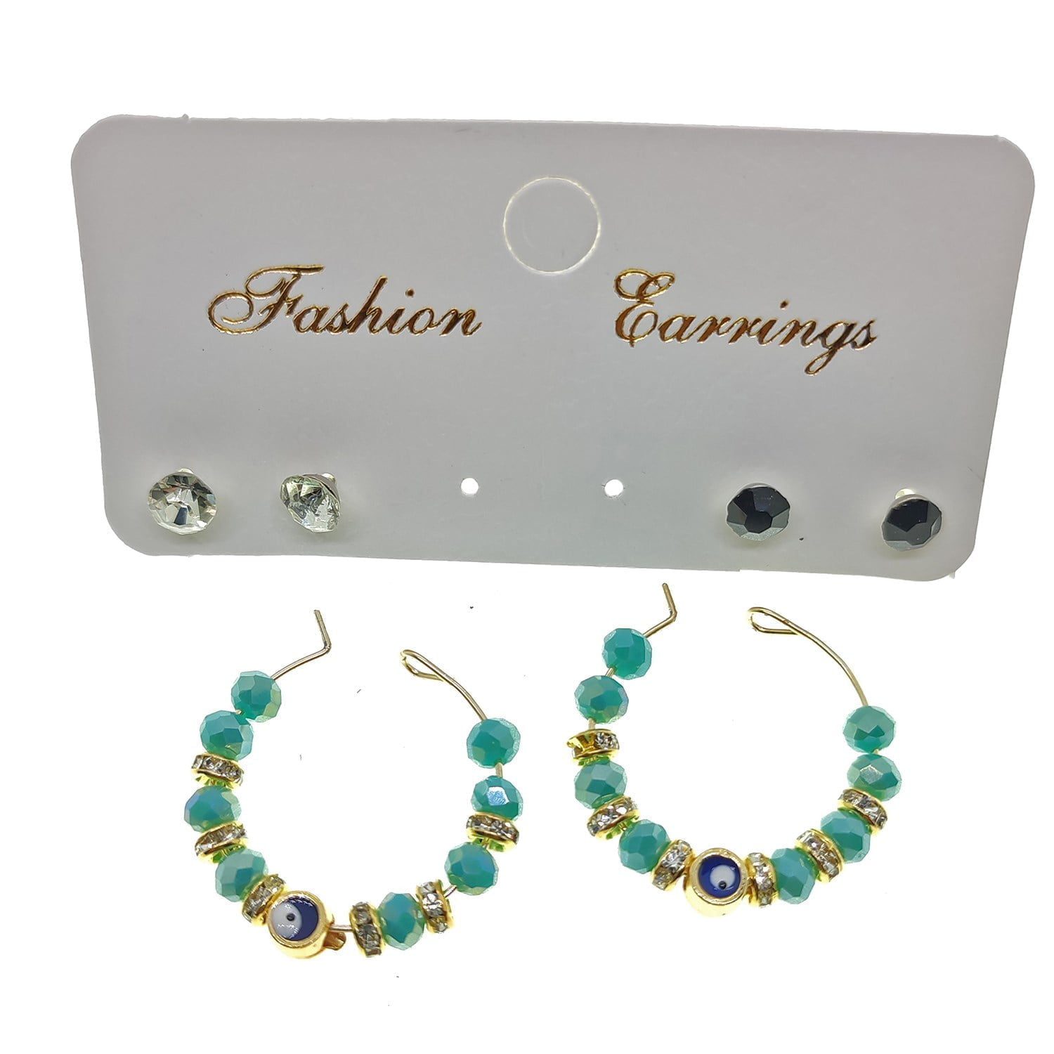 Toptan Altın Renk Turkuaz Boncuk Şık Sallantılı El İşi Kombin Küpe – 2241