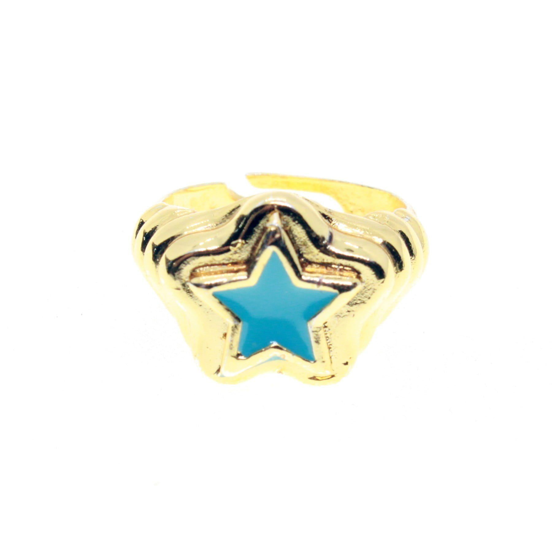 Toptan Altın Renk Turkuaz Mavisi Mineli Yıldız Yüzük Ayarlabilir Her Parmağa Olur – 1489
