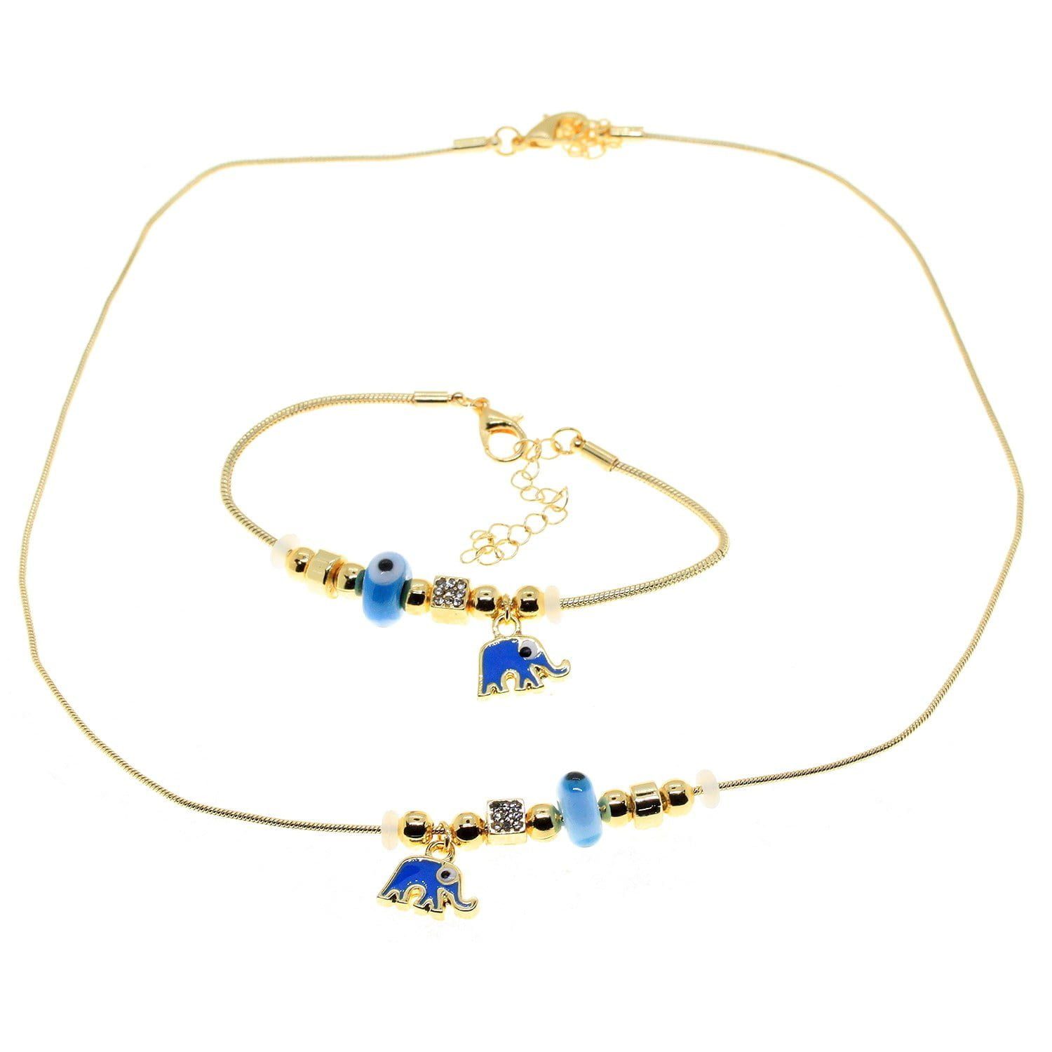 Toptan Altın Renk Turkuaz Mineli Fil Kolye Ve Bileklik Pandora Kombin Zirkon Set Takım – 2999