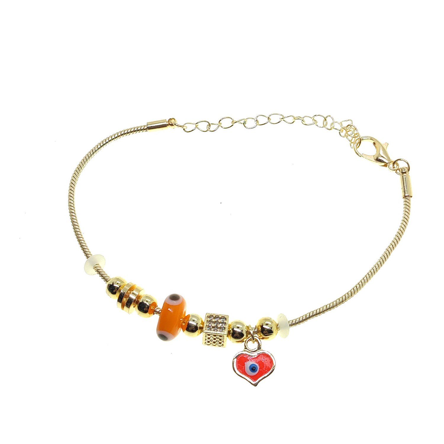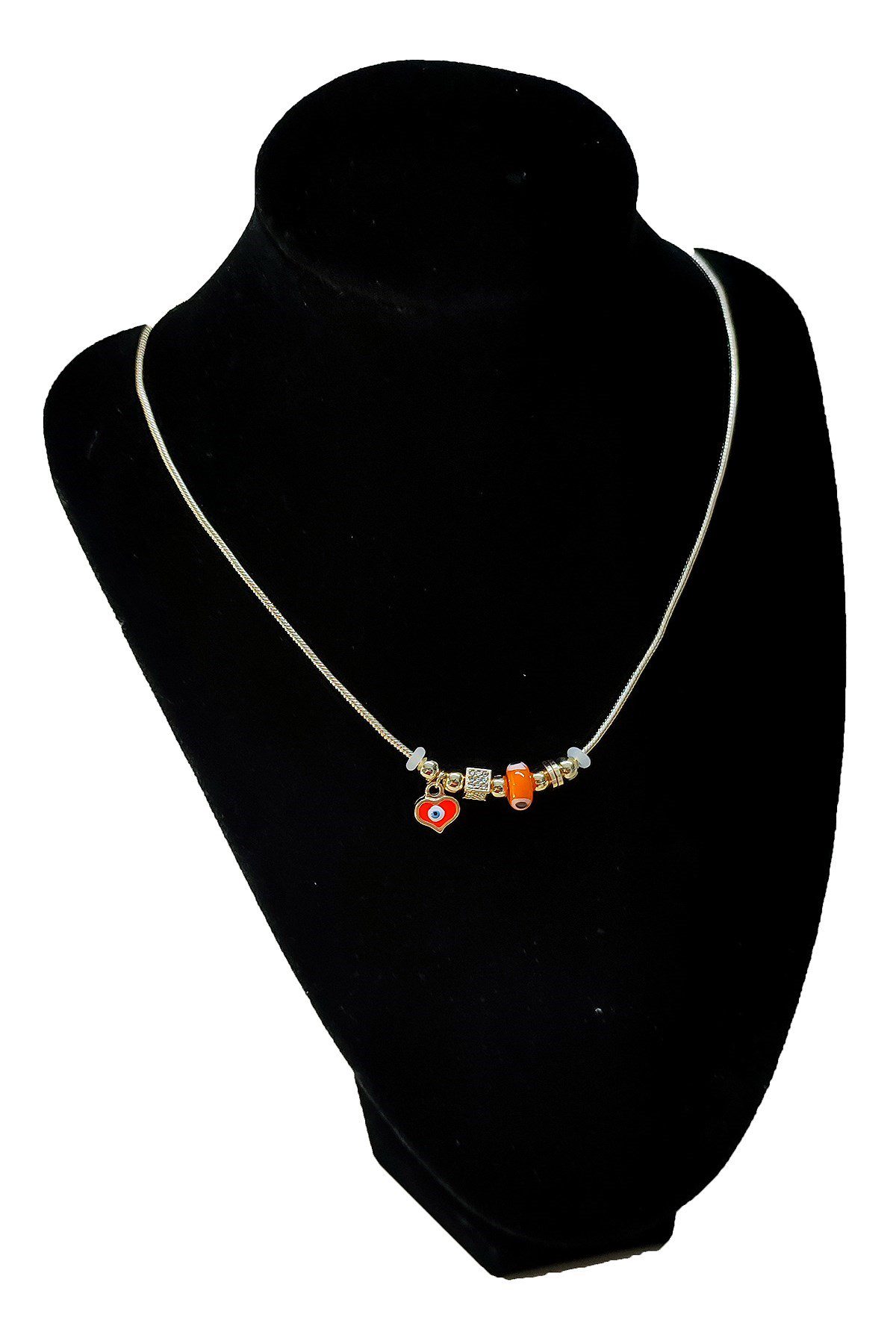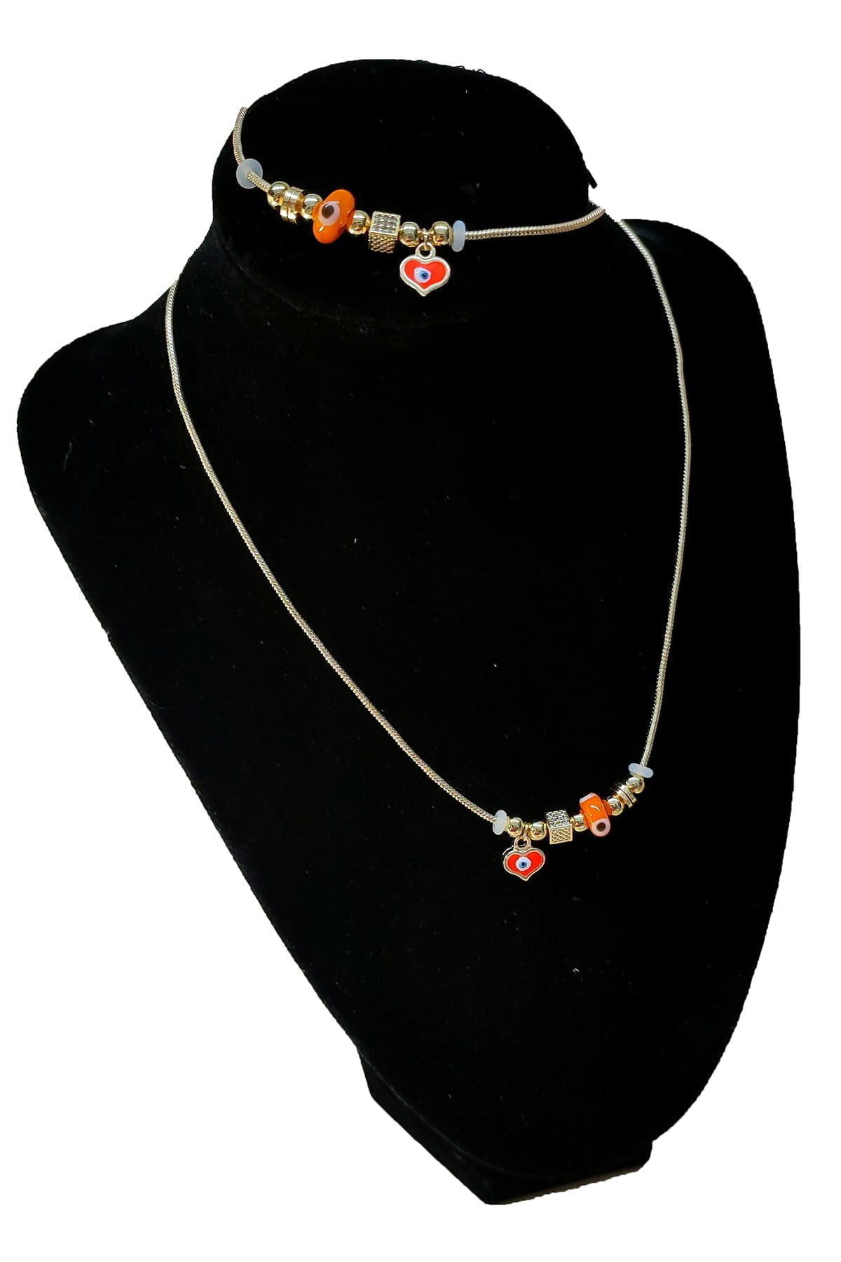 Toptan Altın Renk Turuncu Mineli Kalp Kolye Ve Bileklik Pandora Kombin Zirkon Set Takım – 2794