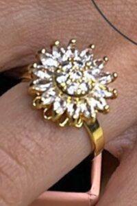 Toptan Altın Renk Yaprak Mekik Kesim Baget Model Zirkon Taşlı Çelik Ayarlanabilir Dönen Çelik Yüzük – 3114