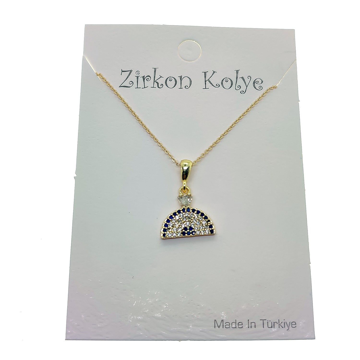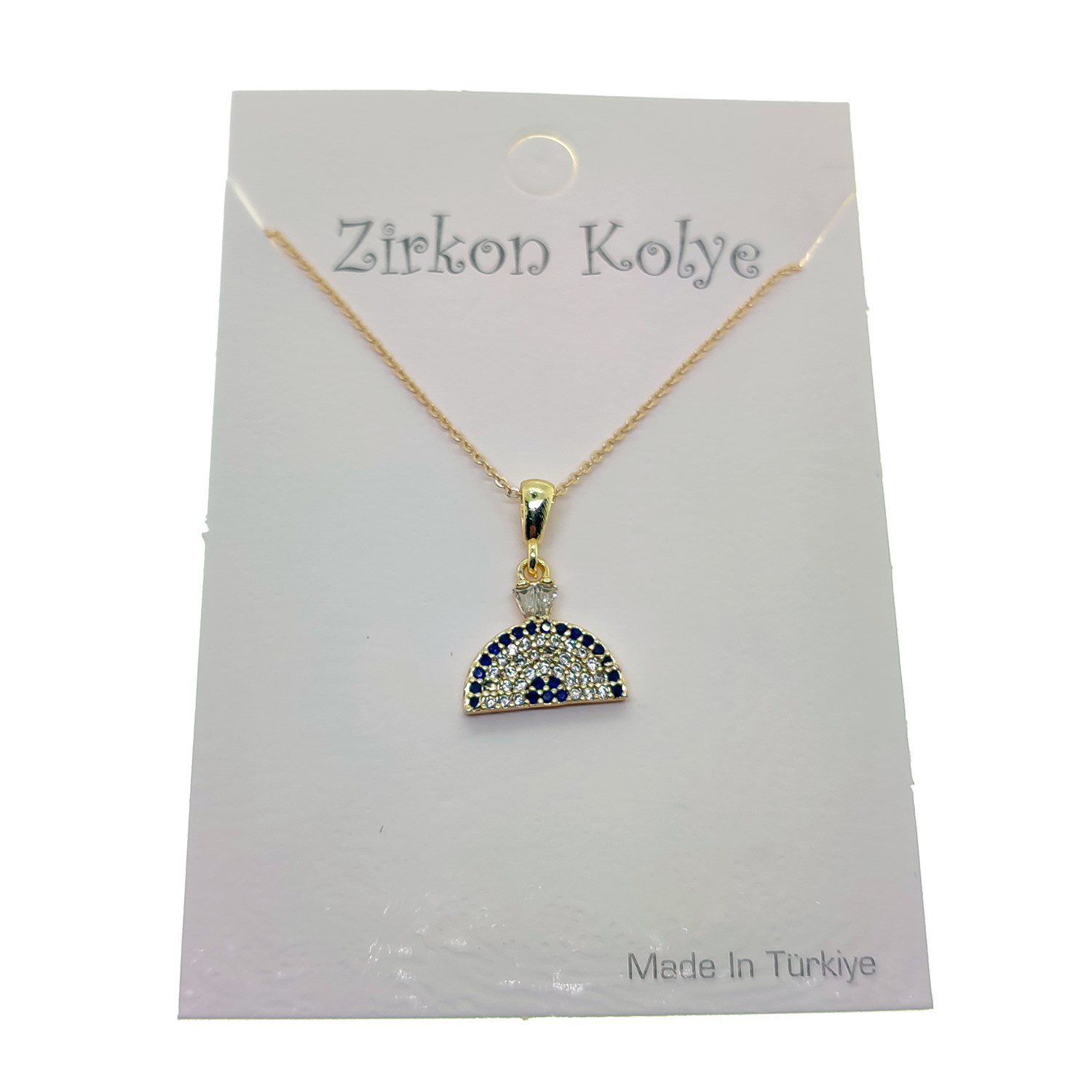 Toptan Altın Renk Yarım Kubbe Nazar Göz Model Zirkon Kolye – 2750