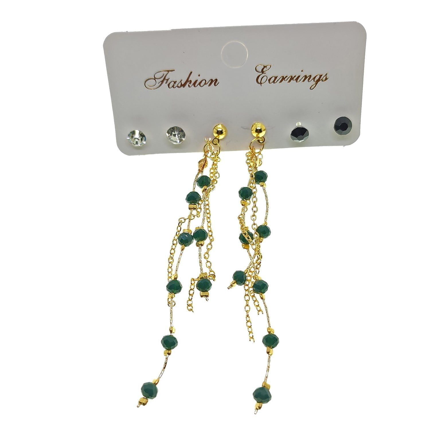 Toptan Altın Renk Yeşil Boncuk Salkım Şık Sallantılı Elişi Kombin Küpe – 2217