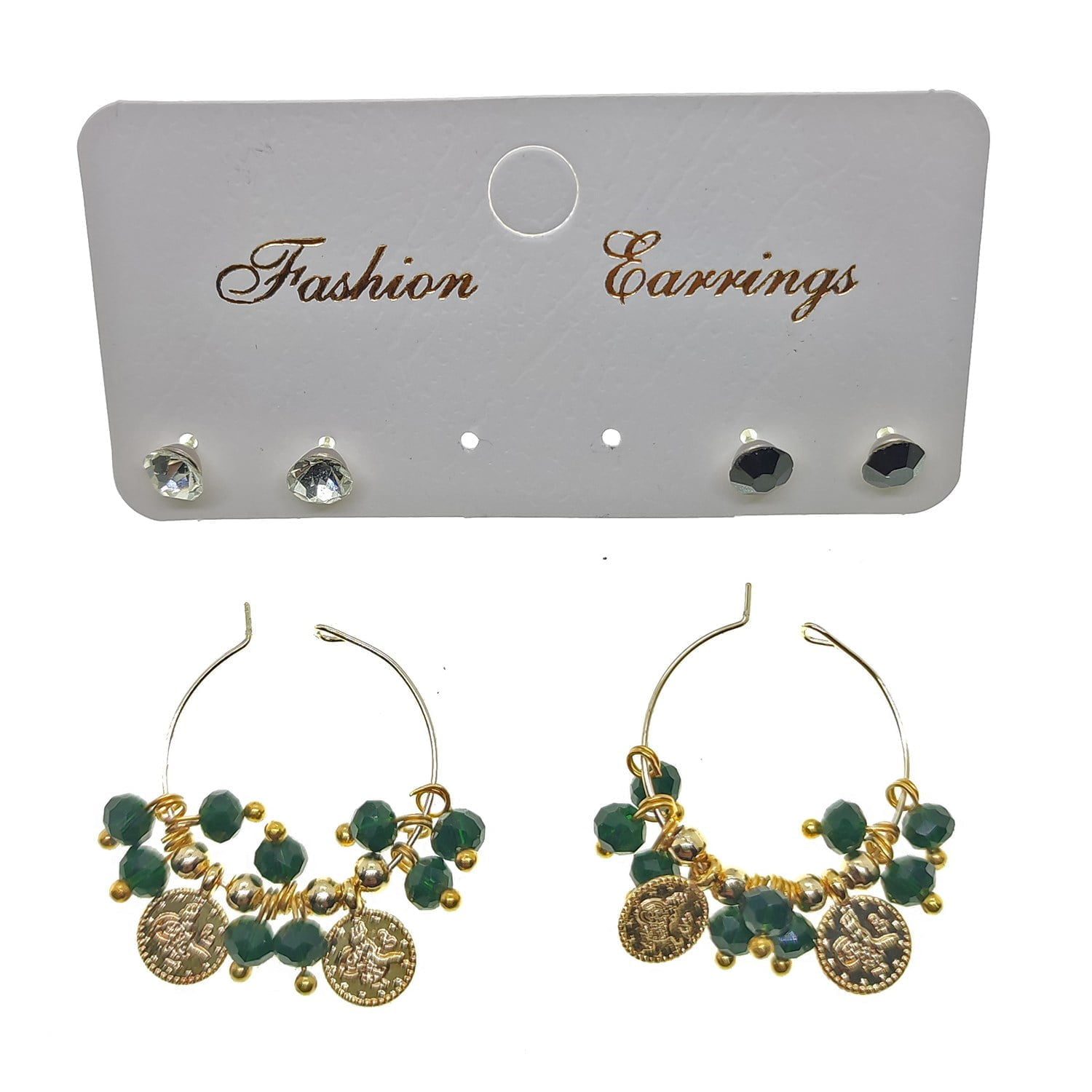Toptan Altın Renk Yeşil Boncuk Şık Sallantılı El İşi Kombin Küpe – 2243