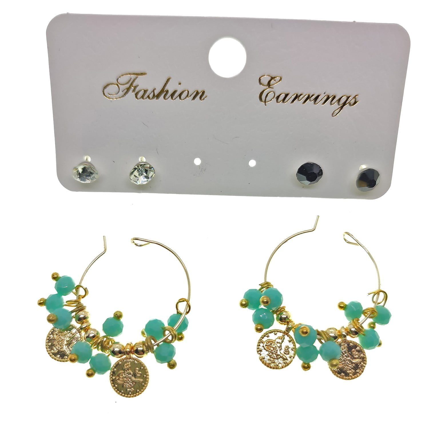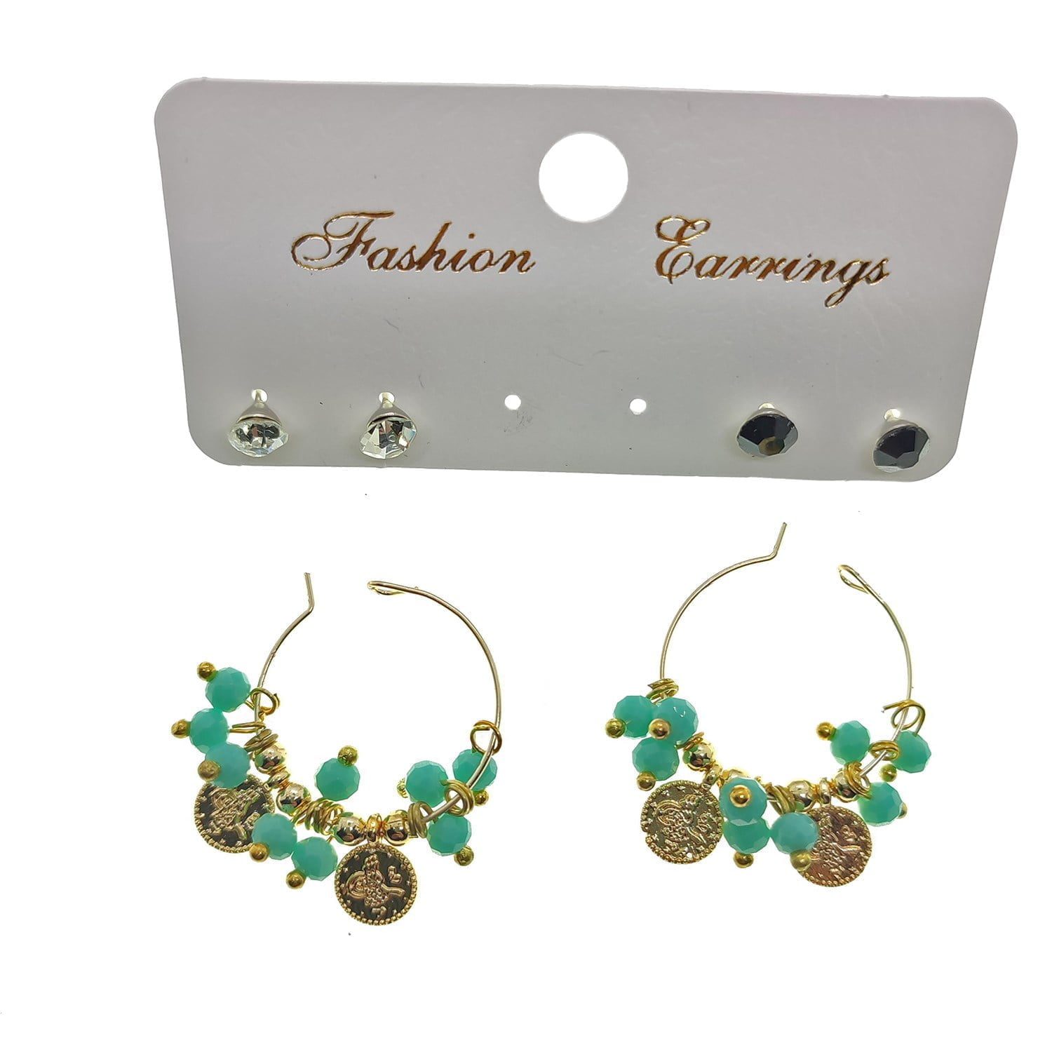 Toptan Altın Renk Yeşil Boncuk Şık Sallantılı El İşi Kombin Küpe – 2247