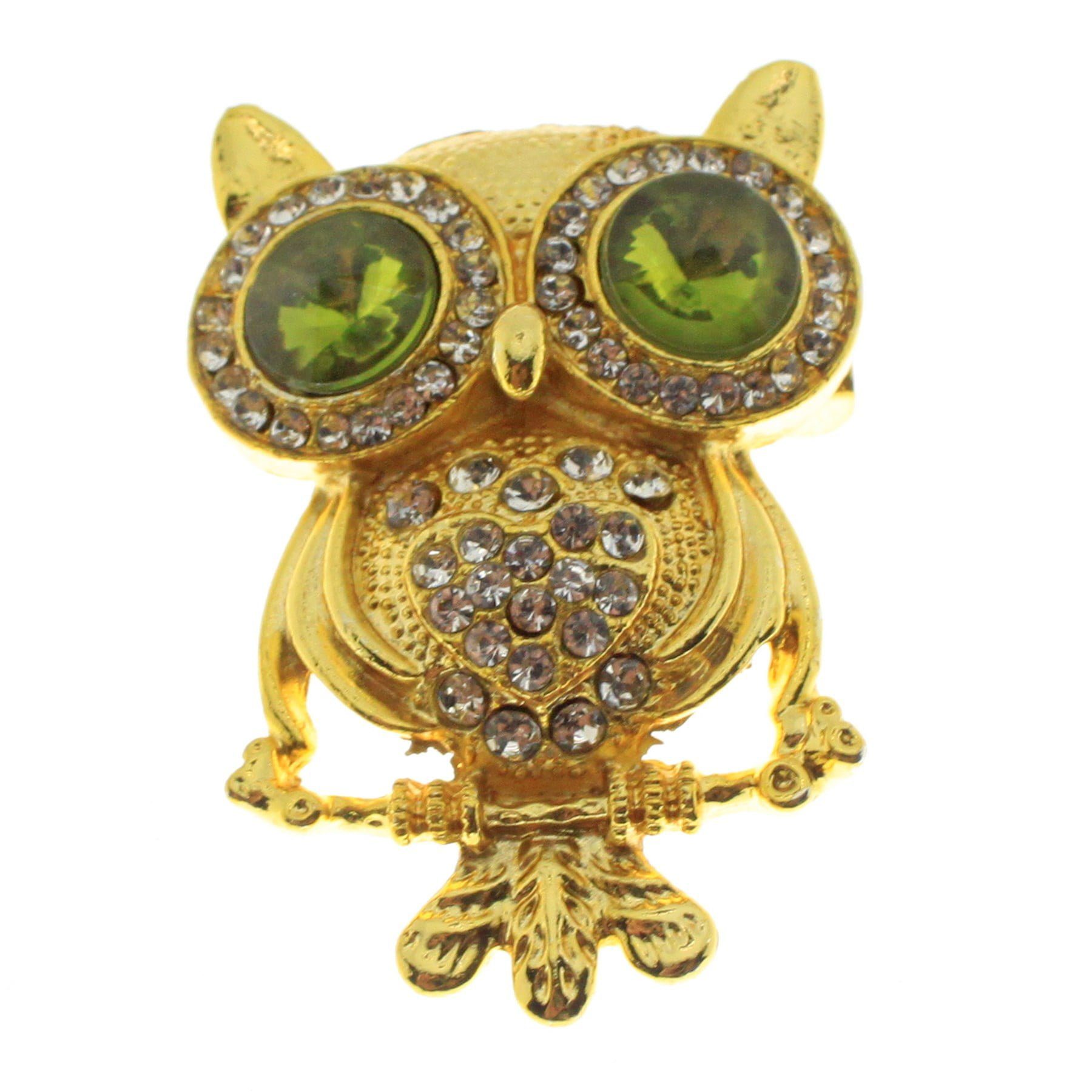 Toptan Altın Renk Yeşil Göz Baykuş Model Broş – 1755