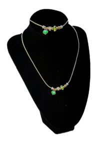 Toptan Altın Renk Yeşil Mineli Kalp Kolye Ve Bileklik Pandora Kombin Zirkon Set Takım – 2791