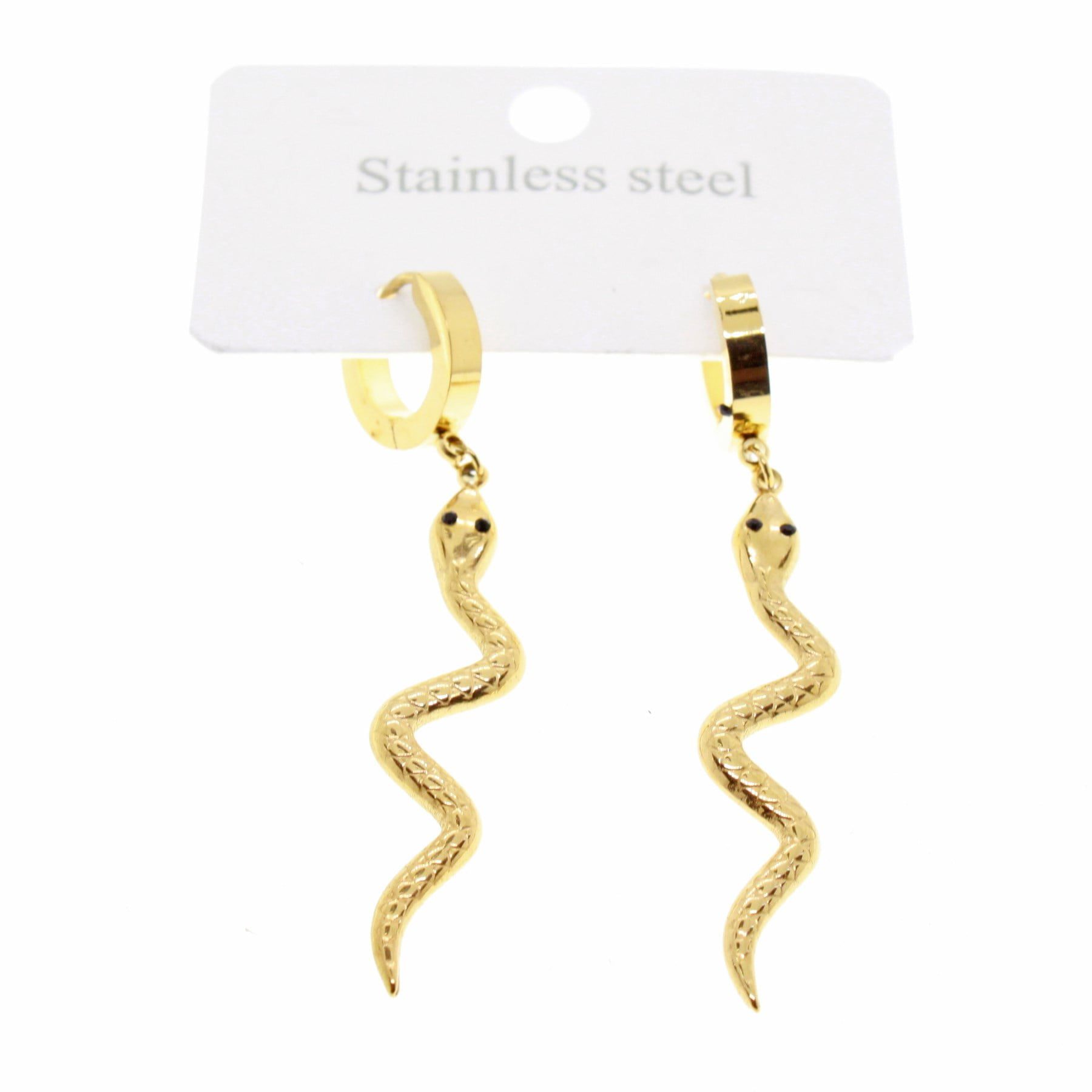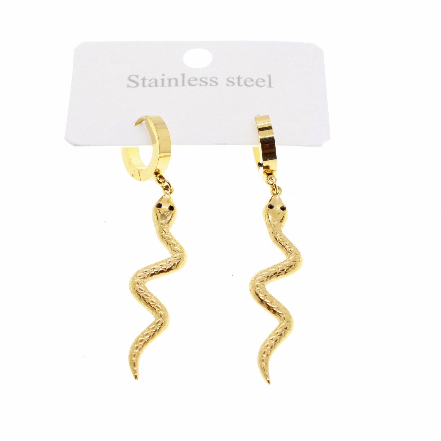 Toptan Altın Renk Yılan Sallantılı Çelik Küpe – 1590