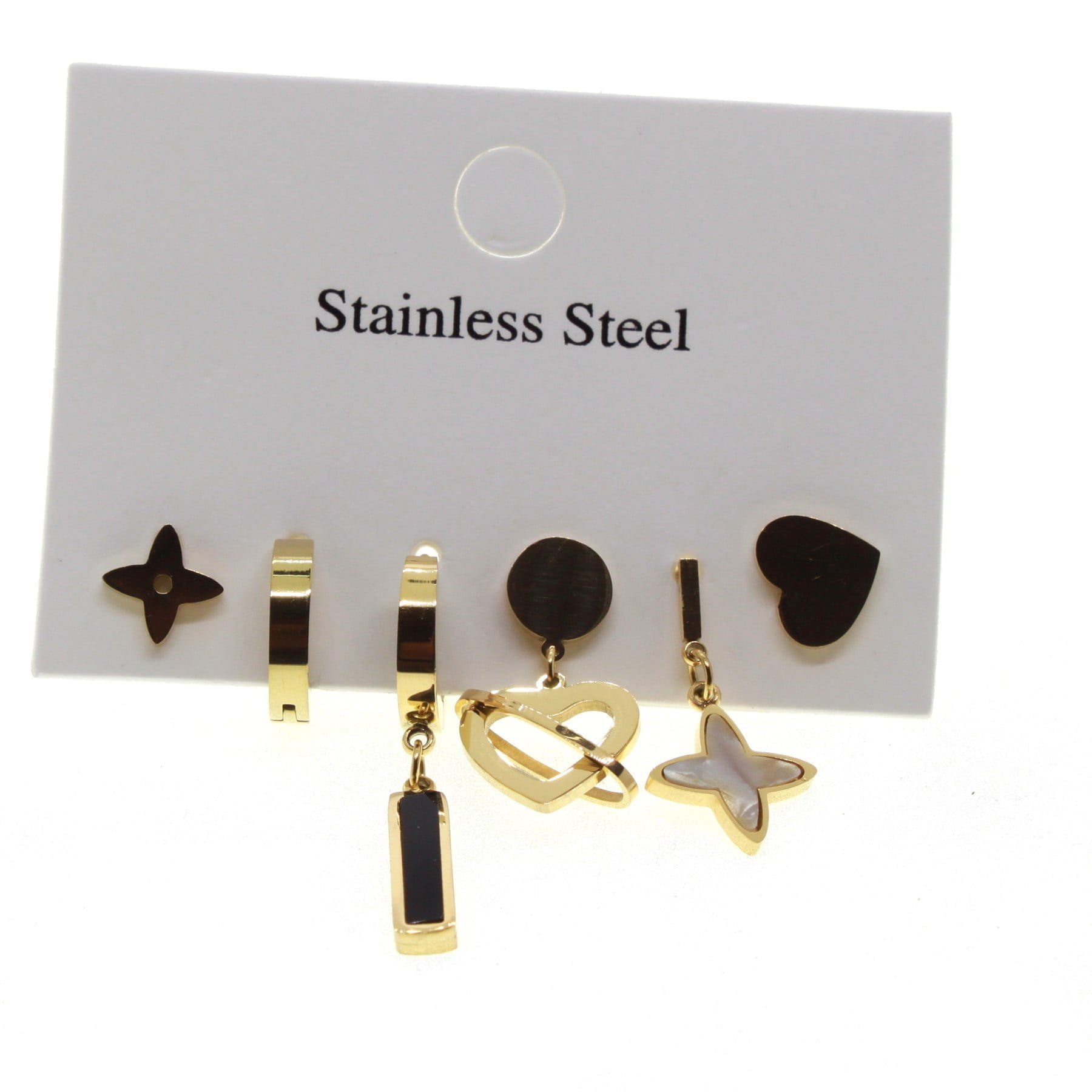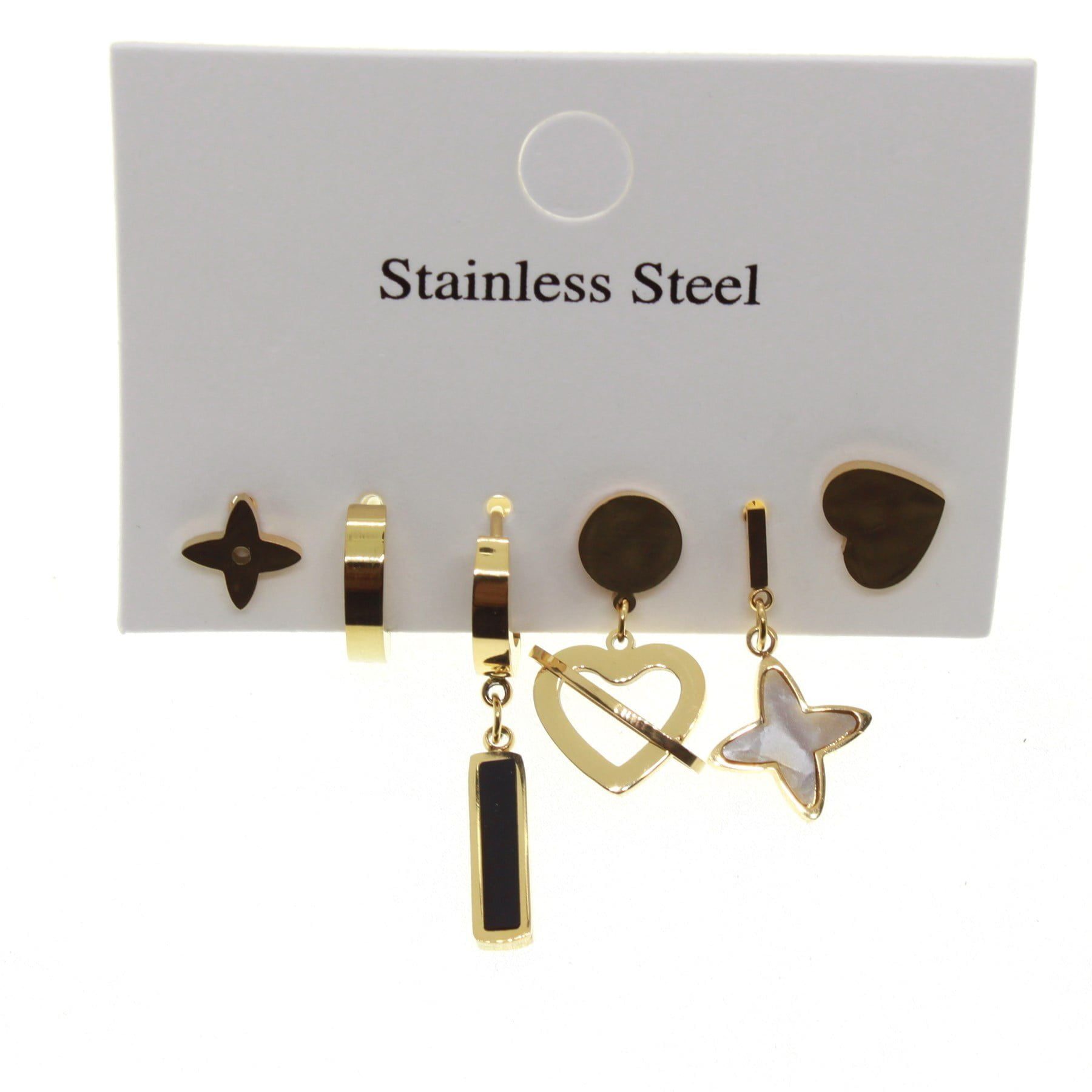Toptan Altın Renk Yıldız Halkalı Kalp Ve Kalp Kombin Çelik Küpe – 1582
