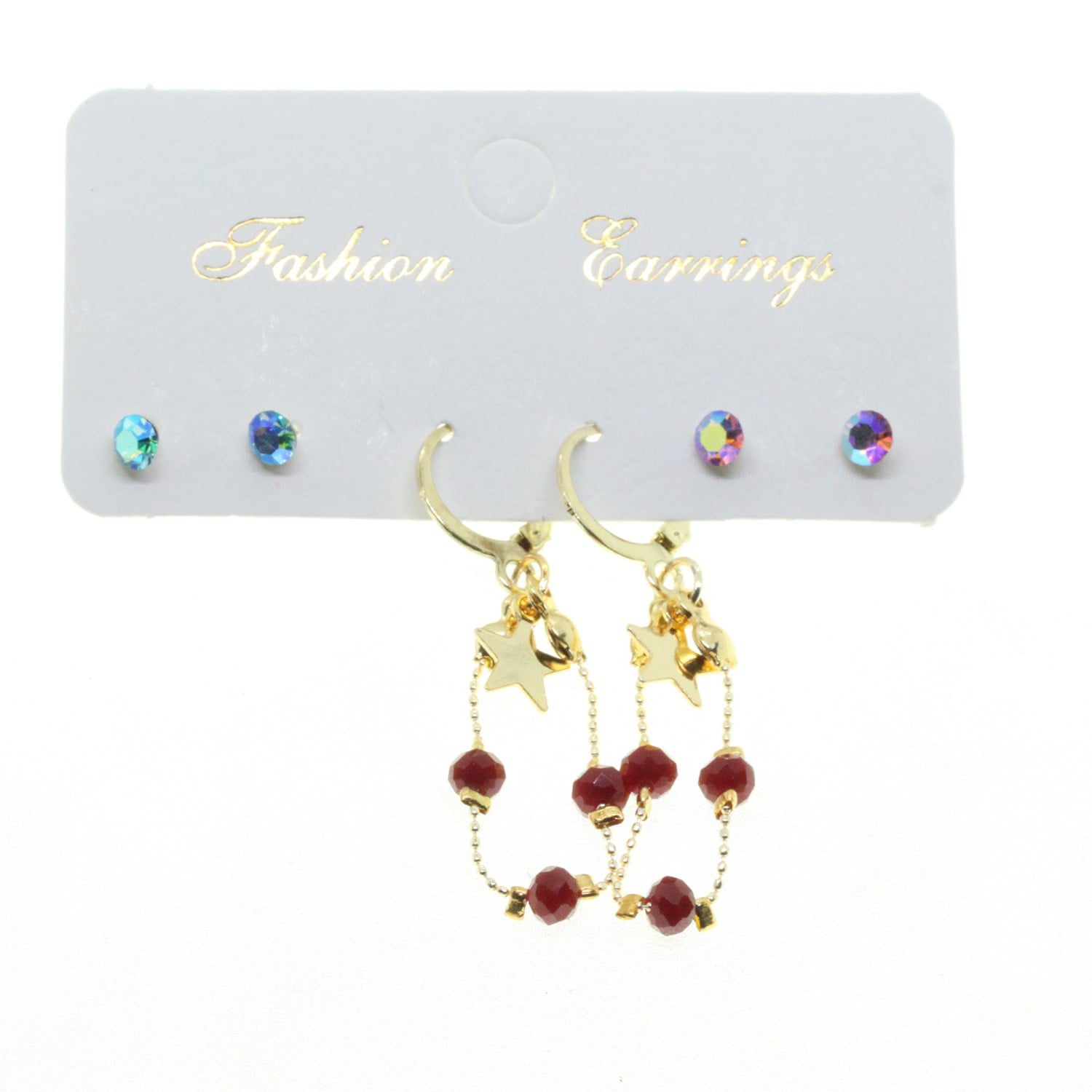 Toptan Altın Renk Yıldız Yuvarlak Kombin Bordo Boncuk Küpe – 2837