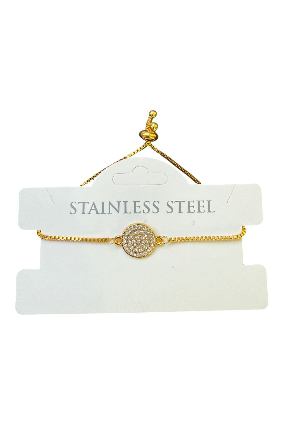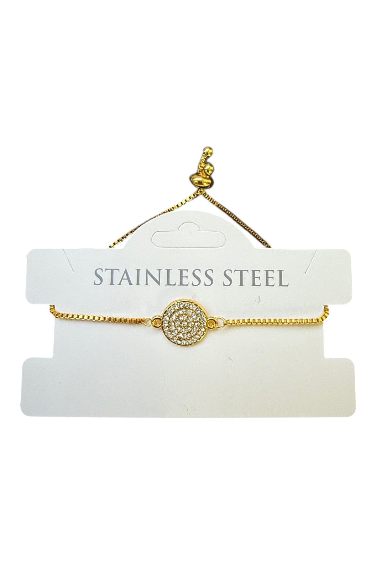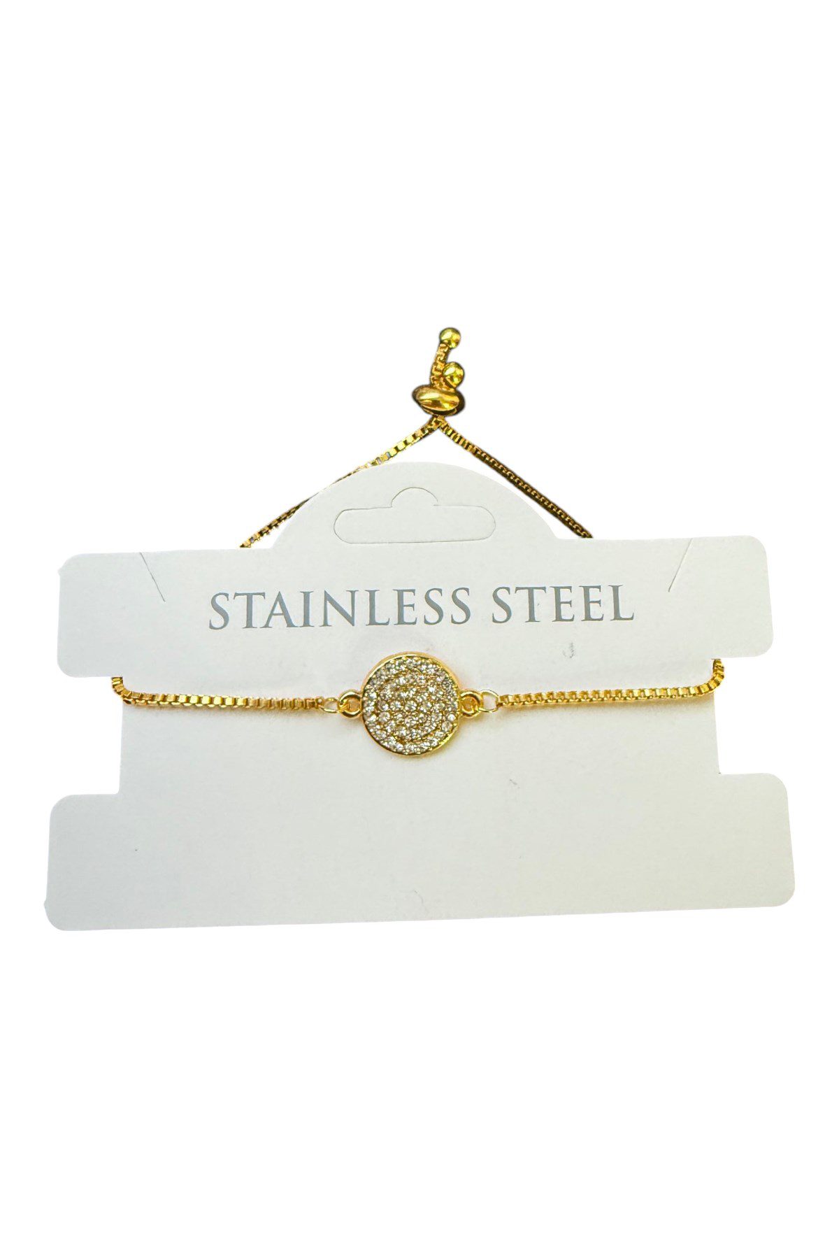 Toptan Altın Renk Yuvarlak Beyaz Taş Asansör Çelik Bileklik – 3585