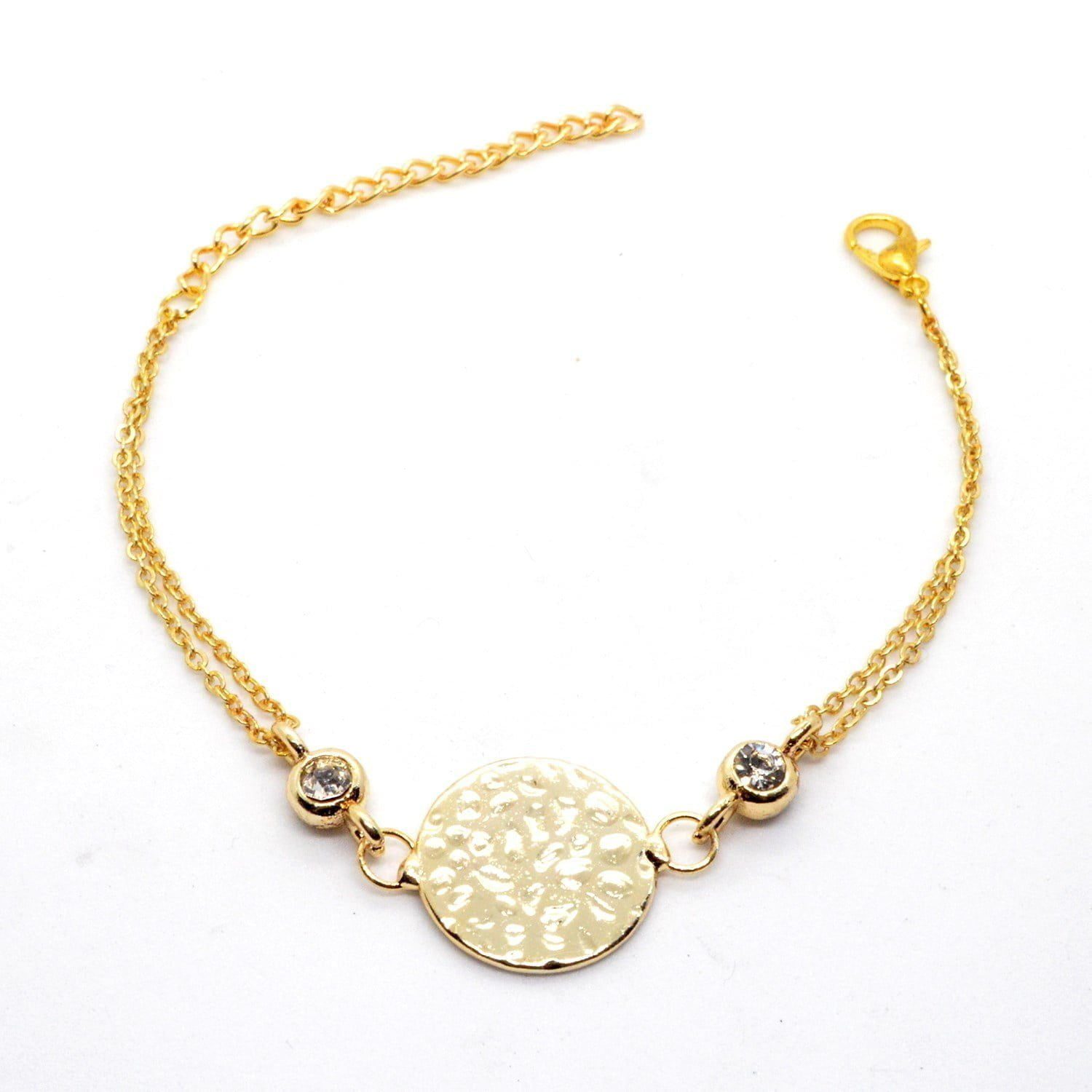 Toptan Altın Renk Yuvarlak Desen Figürlü Çift Zincirli Bileklik 913