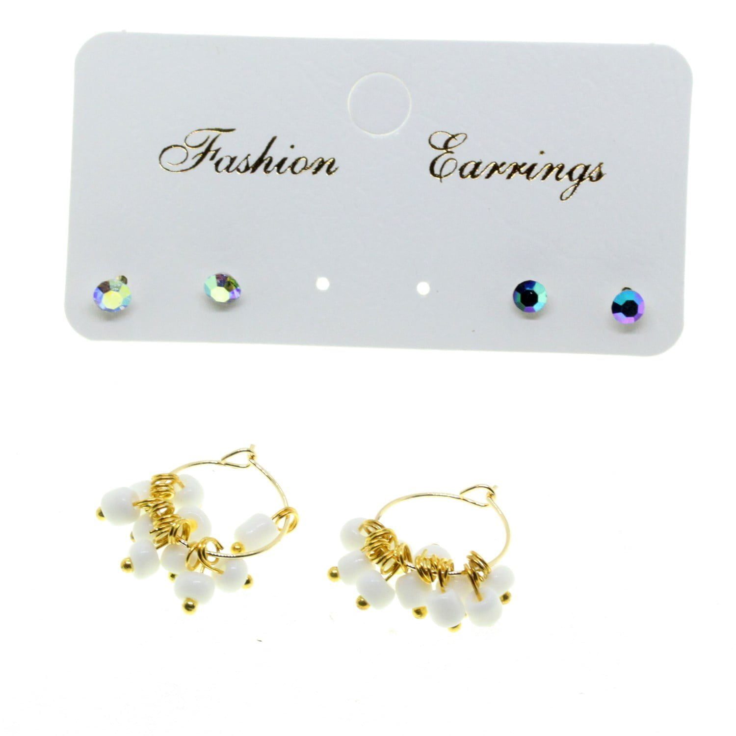 Toptan Altın Renk Yuvarlak Düz Kombin Beyaz Boncuk Küpe – 2860