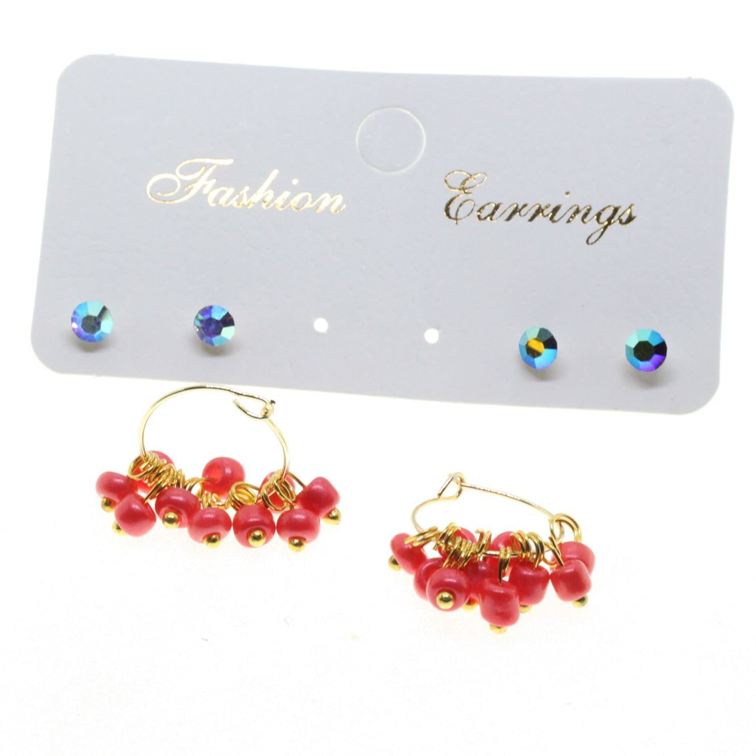 Toptan Altın Renk Yuvarlak Düz Kombin Kırmızı Boncuk Küpe – 2862