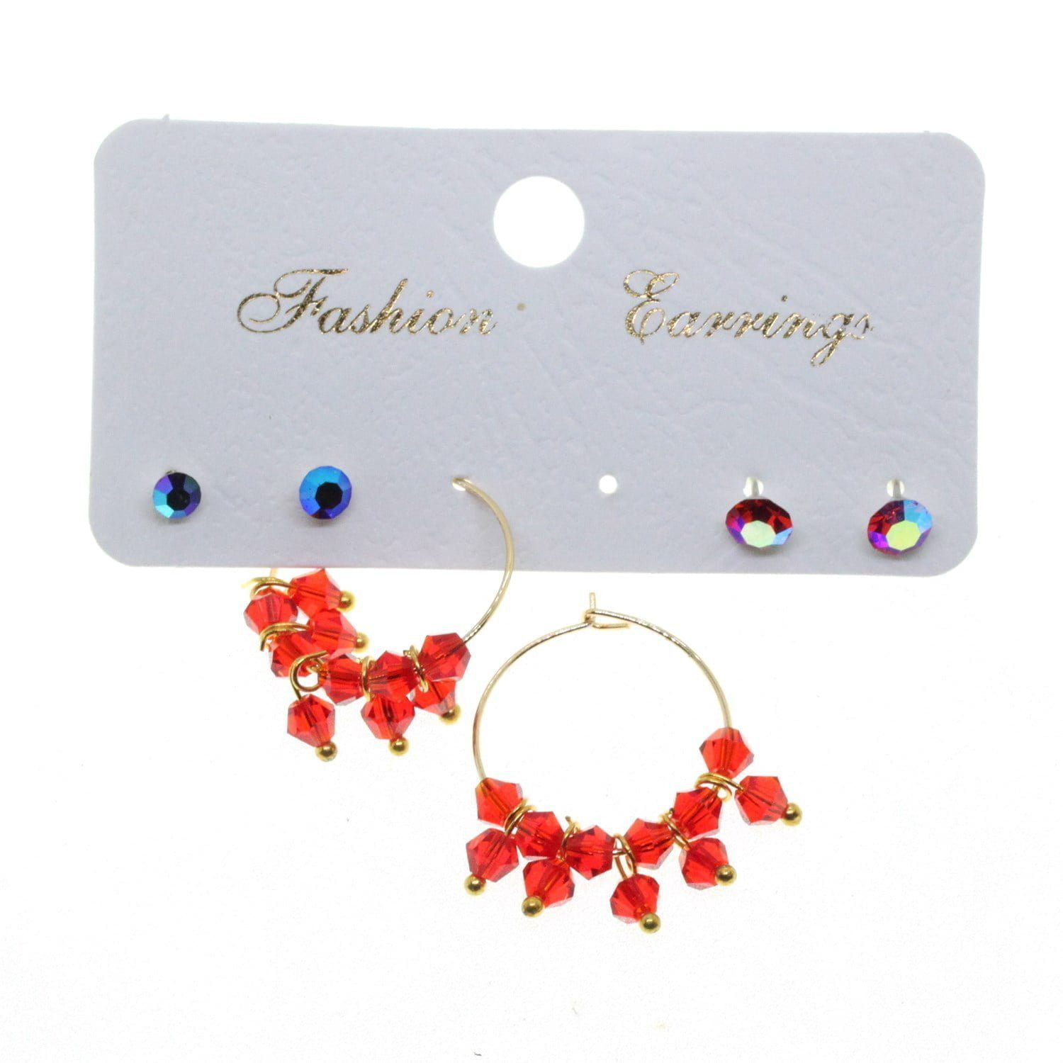 Toptan Altın Renk Yuvarlak Kesme Kombin Kırmızı Boncuk Küpe – 2857