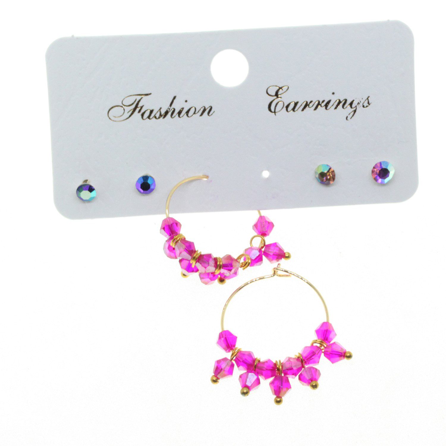 Toptan Altın Renk Yuvarlak Kesme Kombin Pembe Boncuk Küpe – 2855