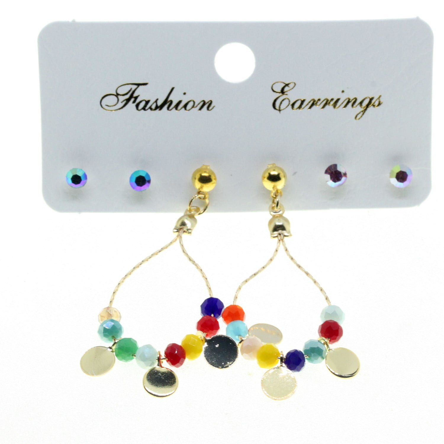 Toptan Altın Renk Yuvarlak Pullu Kombin Asorti Boncuk Küpe – 2842