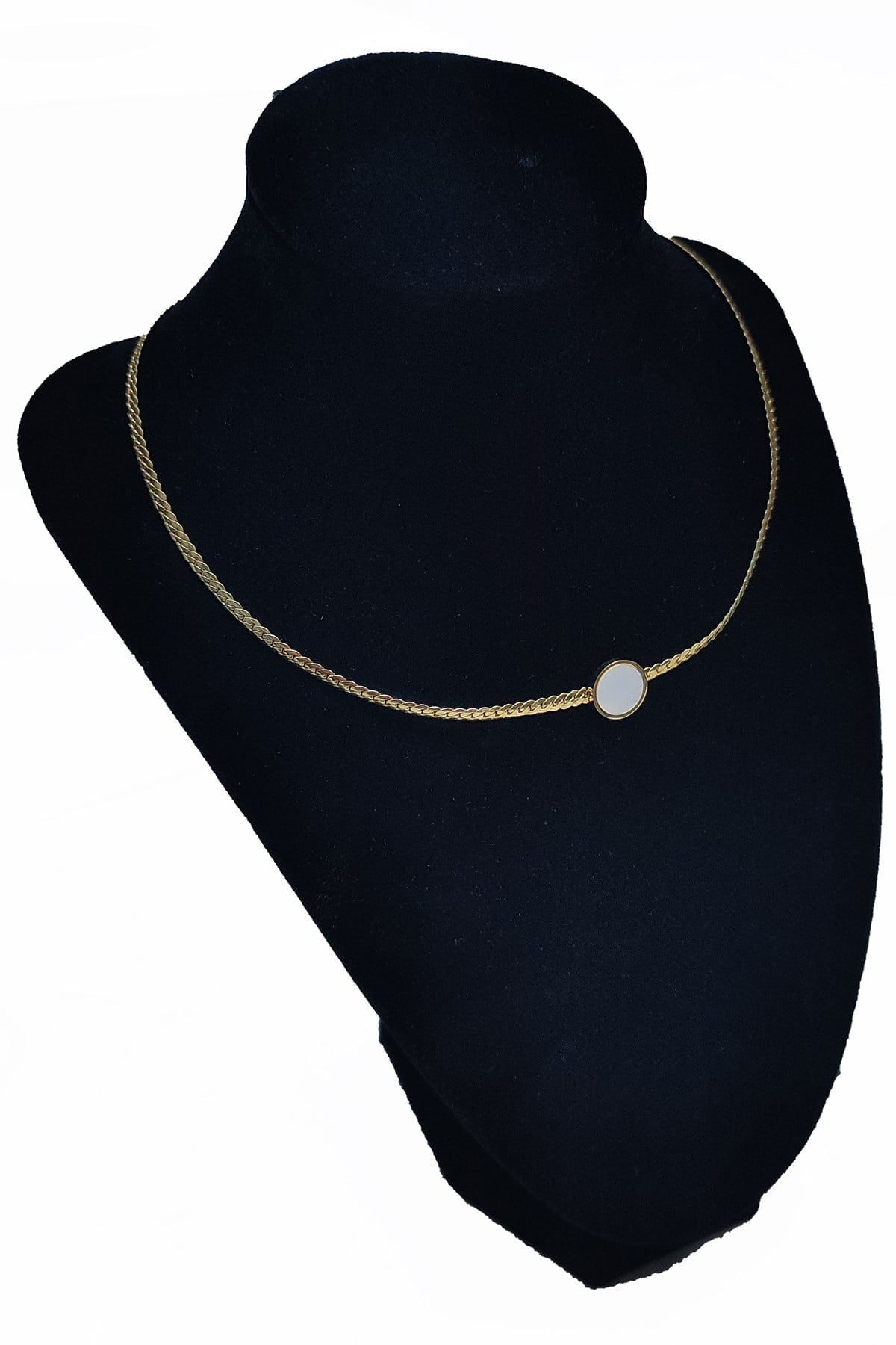 Toptan Altın Renk Yuvarlak Sedefli Çelik Kolye – 2539