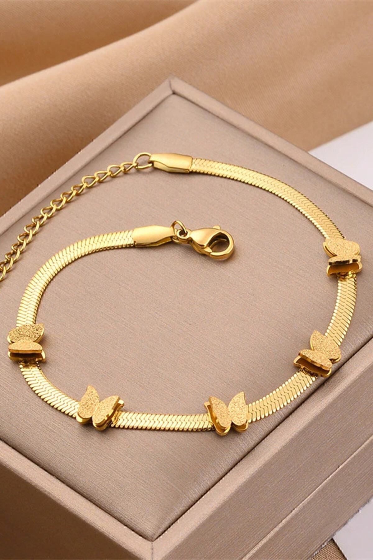 Toptan Altın Renk Zarif Ve Şık Tasarım Ezme Italyan Zincirli Kelebek Stil Çelik Bileklik – 3409