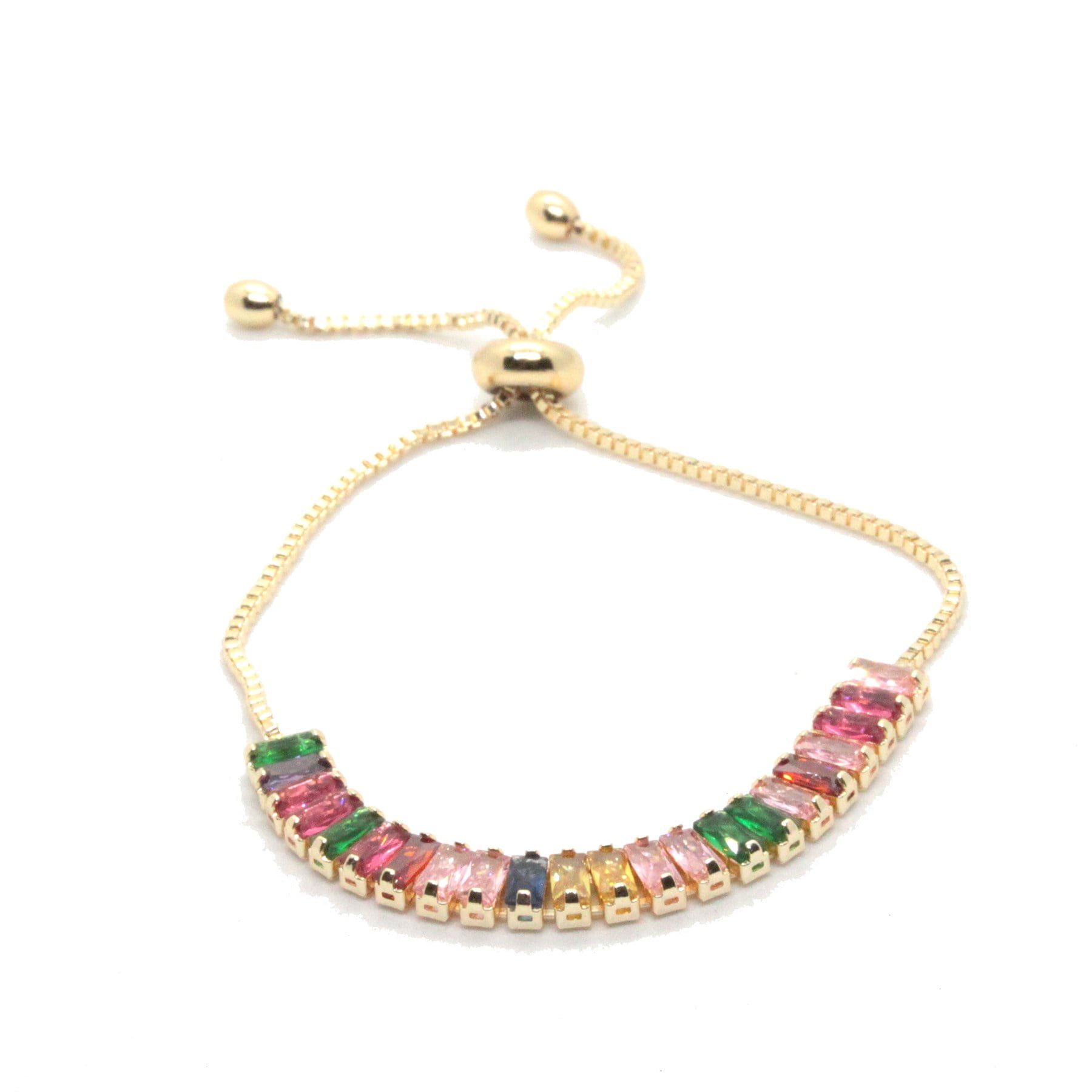 Toptan Altın Renk Zirkon Asorti Renk Baget Asansör Bileklik – 1412