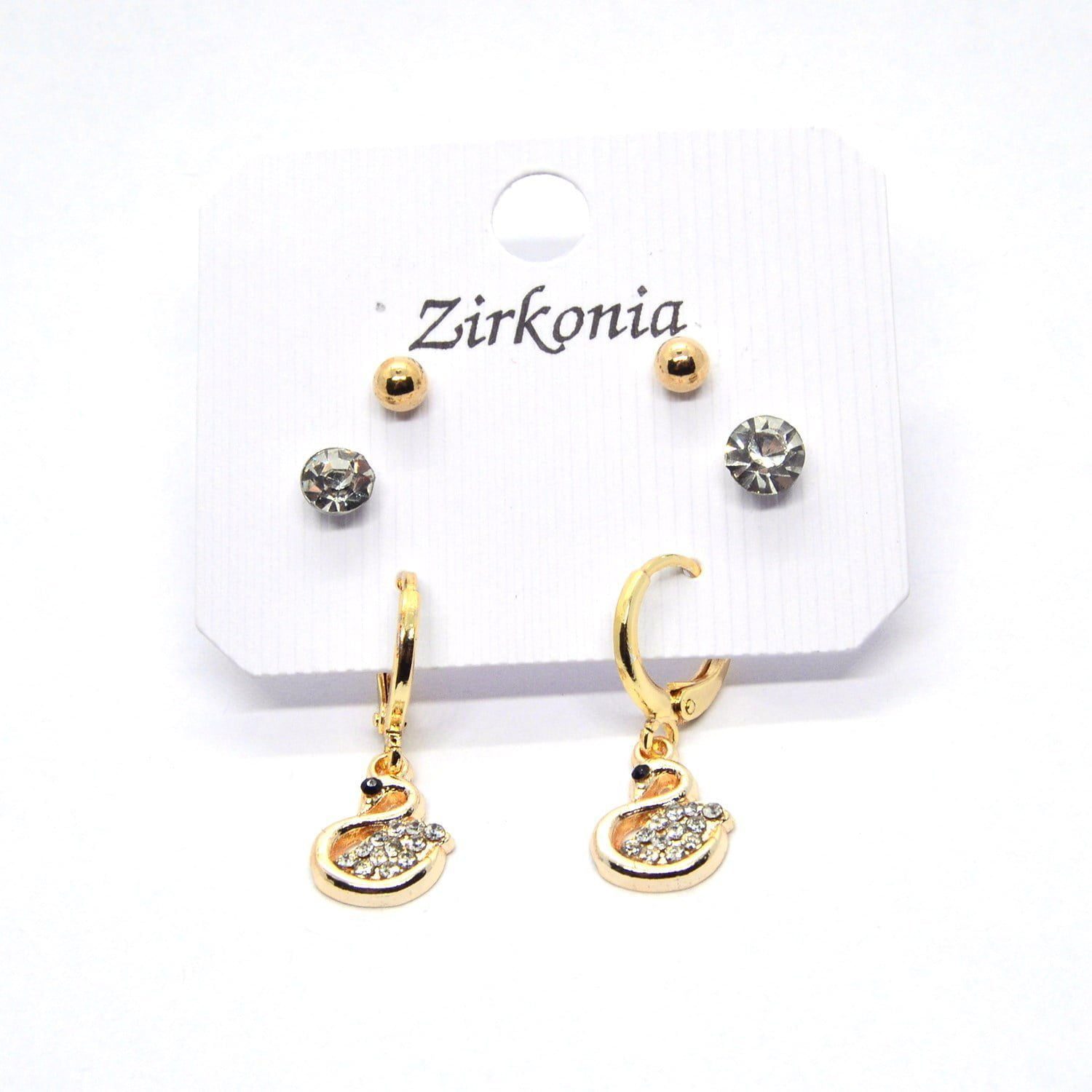 Toptan Altın Renk Zirkon Kuğu Küpe – 1084