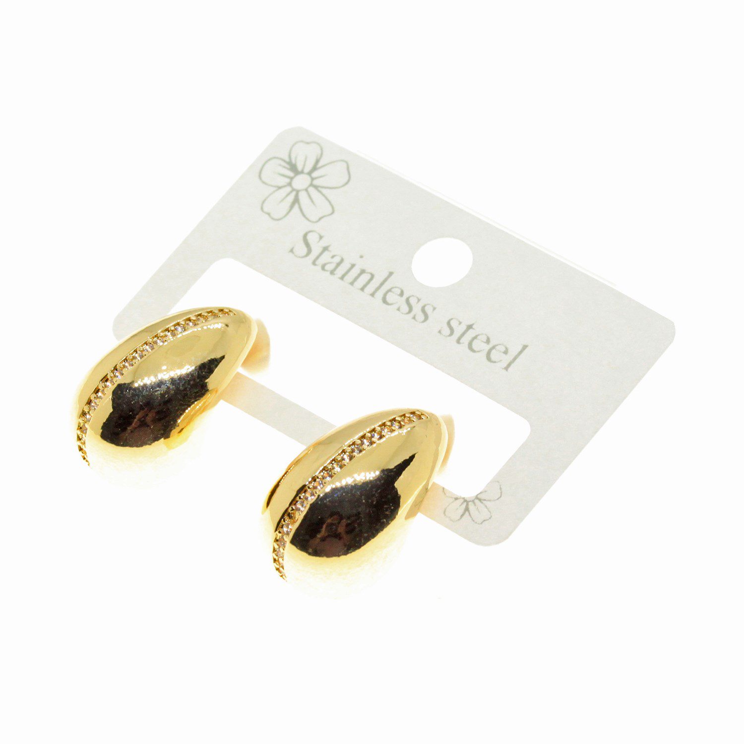 Toptan Altın Renk Zirkon Taş Gözyaşı Bottega Küpe Vip Kararmaz Solmaz Çelik Küpe – 3029