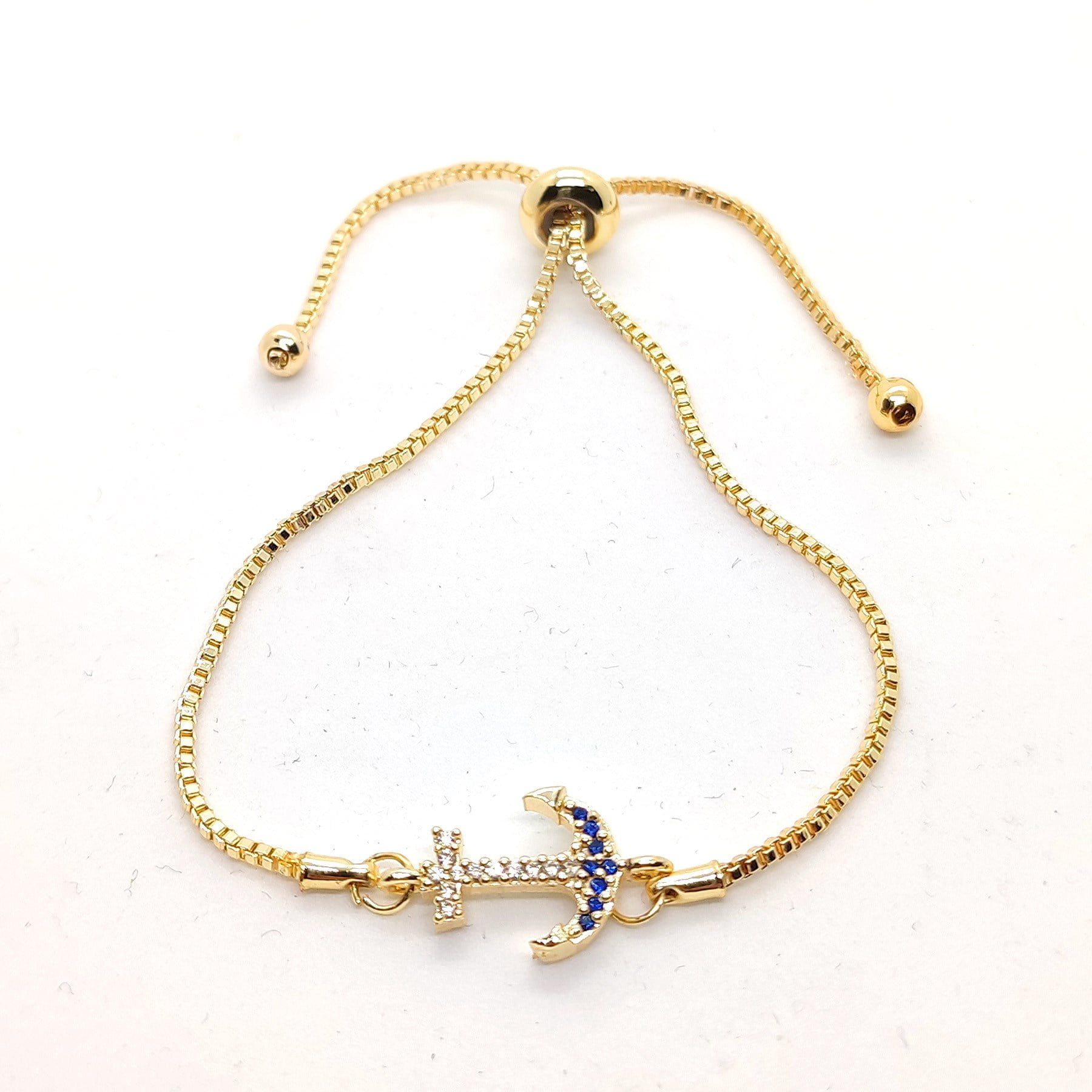 Toptan Altın Renk Zirkon Taşlı Çapa Asansör Bileklik