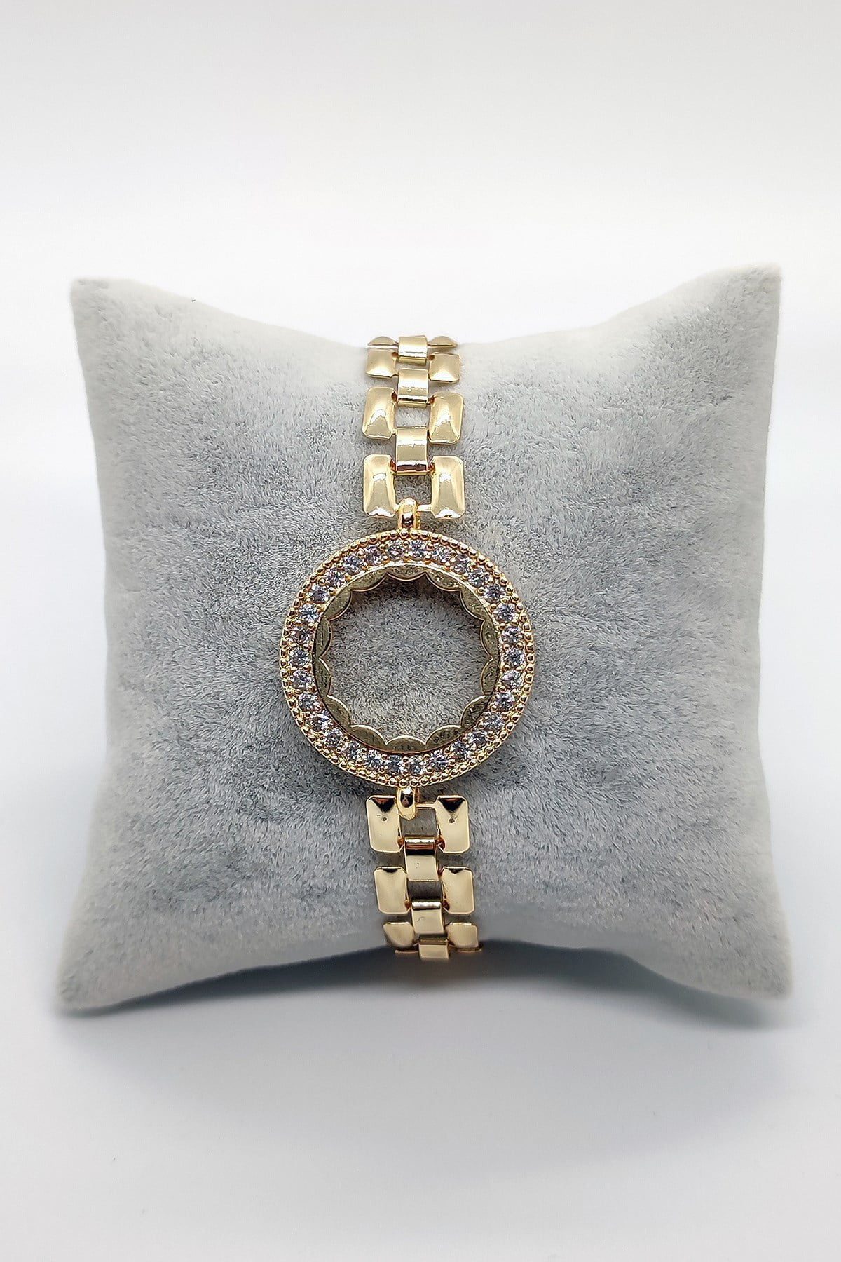 Toptan Altın Renk Zirkon Taşlı Çeyrek Altın Koyulan Bayan Bileklik Çerçeve 526
