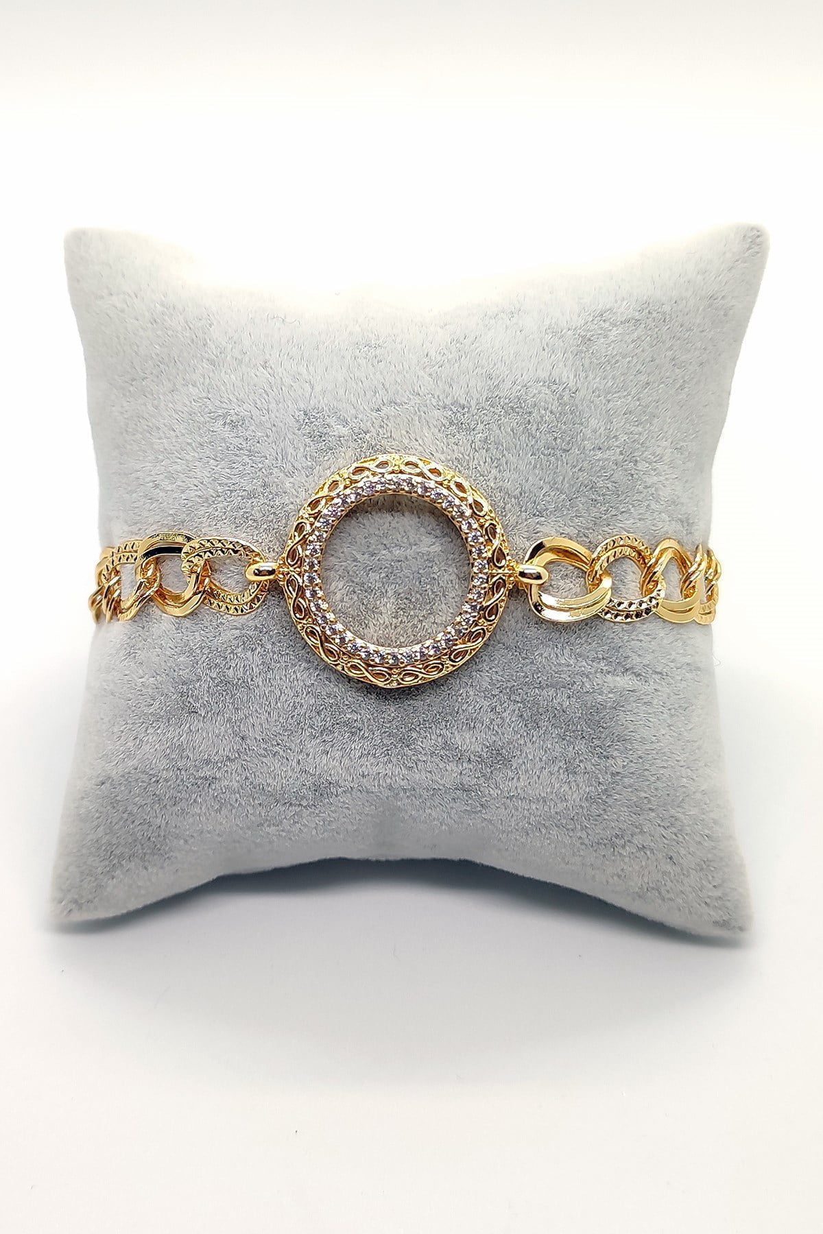 Toptan Altın Renk Zirkon Taşlı Çeyrek Altın Koyulan Bayan Bileklik Çerçeve 532