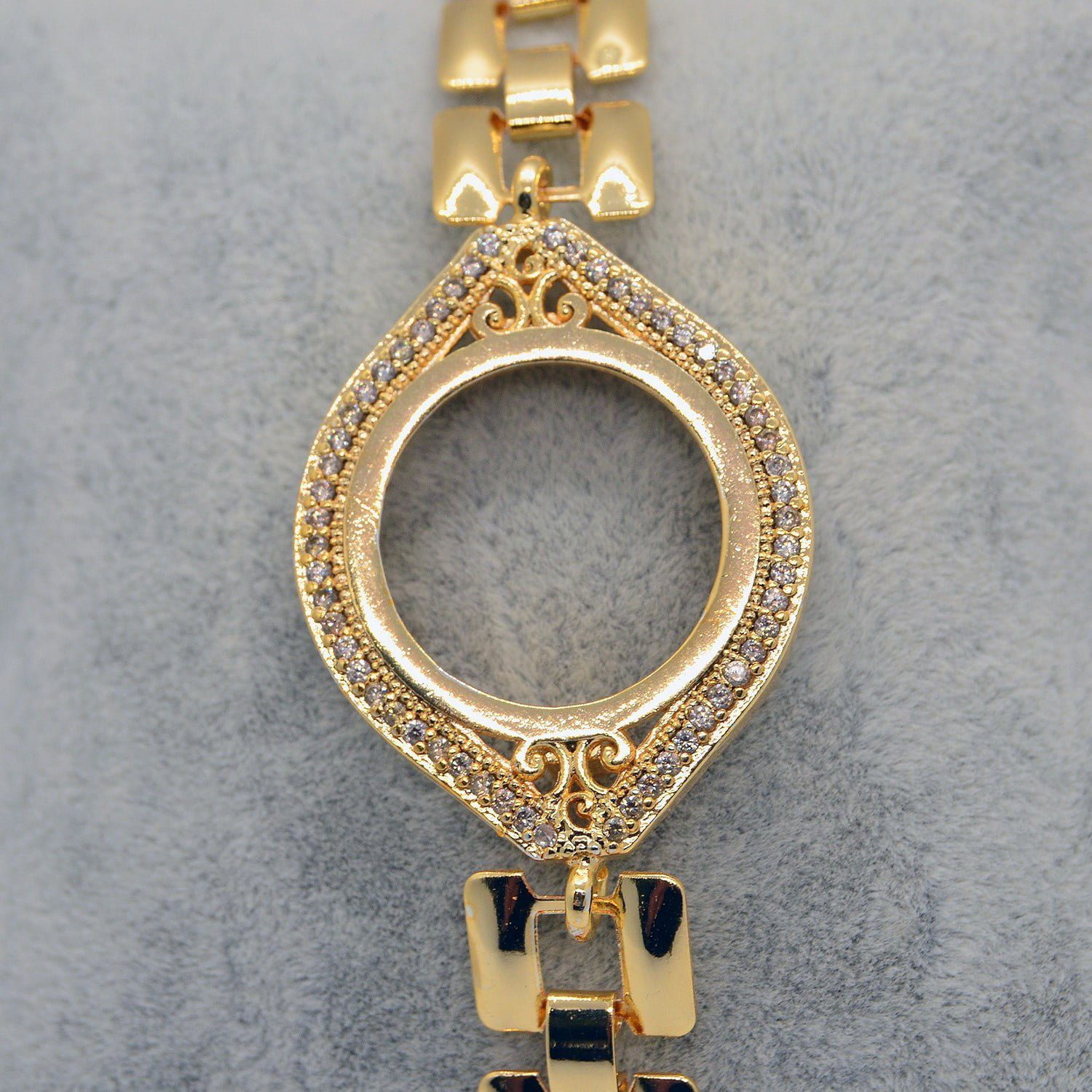 Toptan Altın Renk Zirkon Taşlı Çeyrek Altın Koyulan Bayan Bileklik Çerçeve 768
