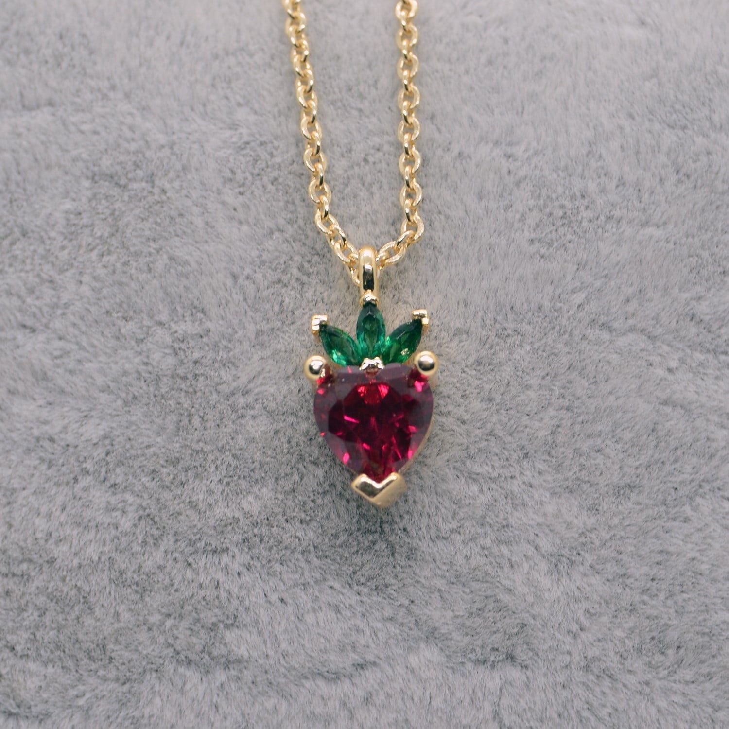 Toptan Altın Renk Zirkon Taşlı Çilek Kolye 772