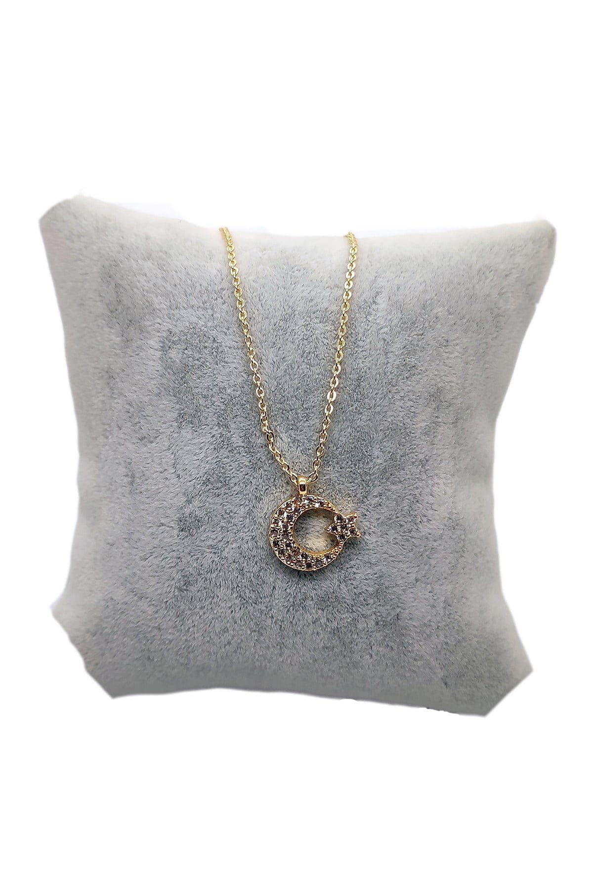 Toptan Altın Renk Zirkon Taşlı Kolye Ay Yıldız Kolyezirkon