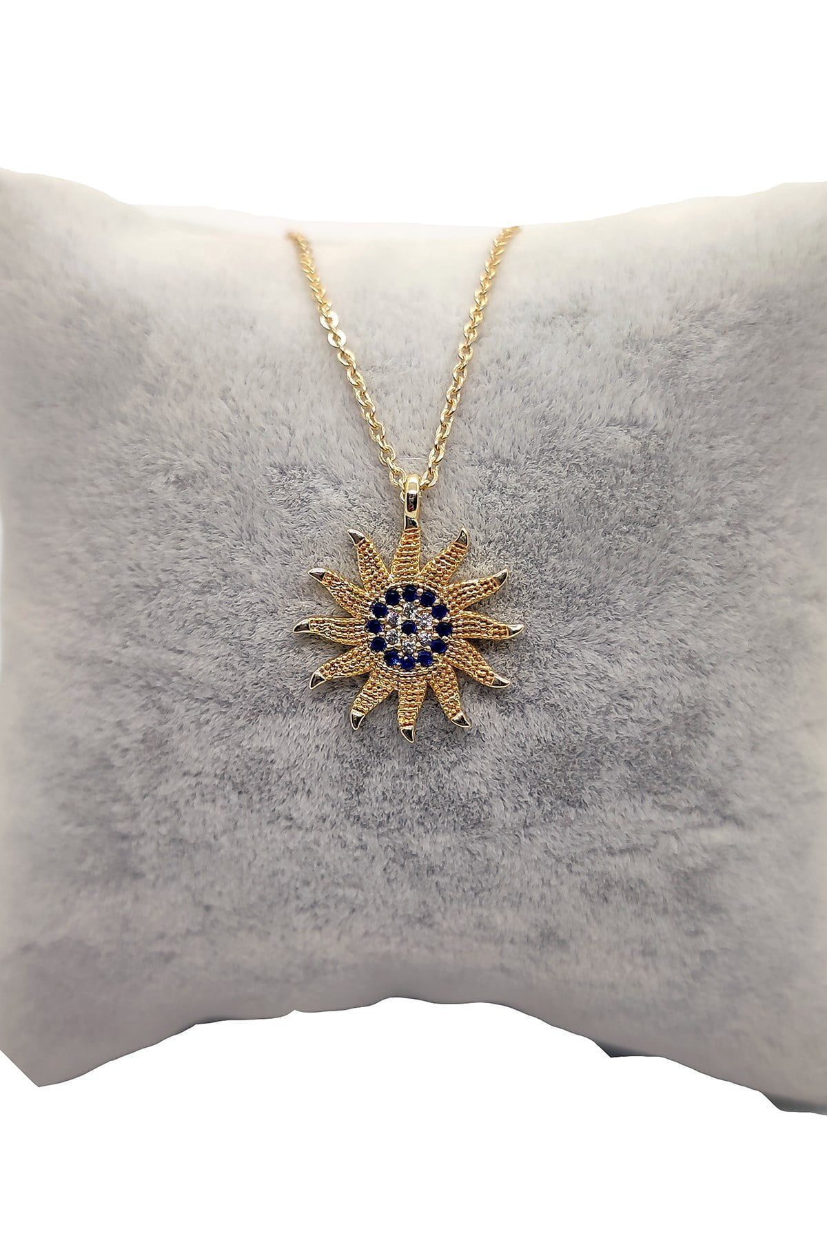 Toptan Altın Renk Zirkon Taşlı Kolye Güneş Göz Kolyezirkon