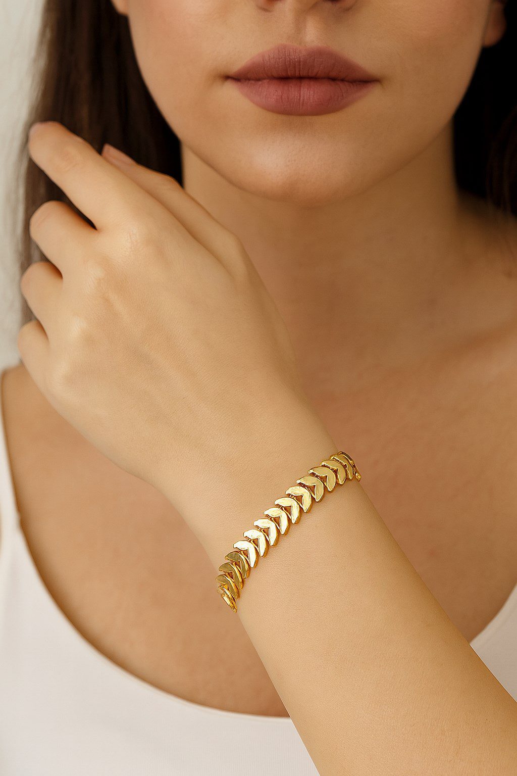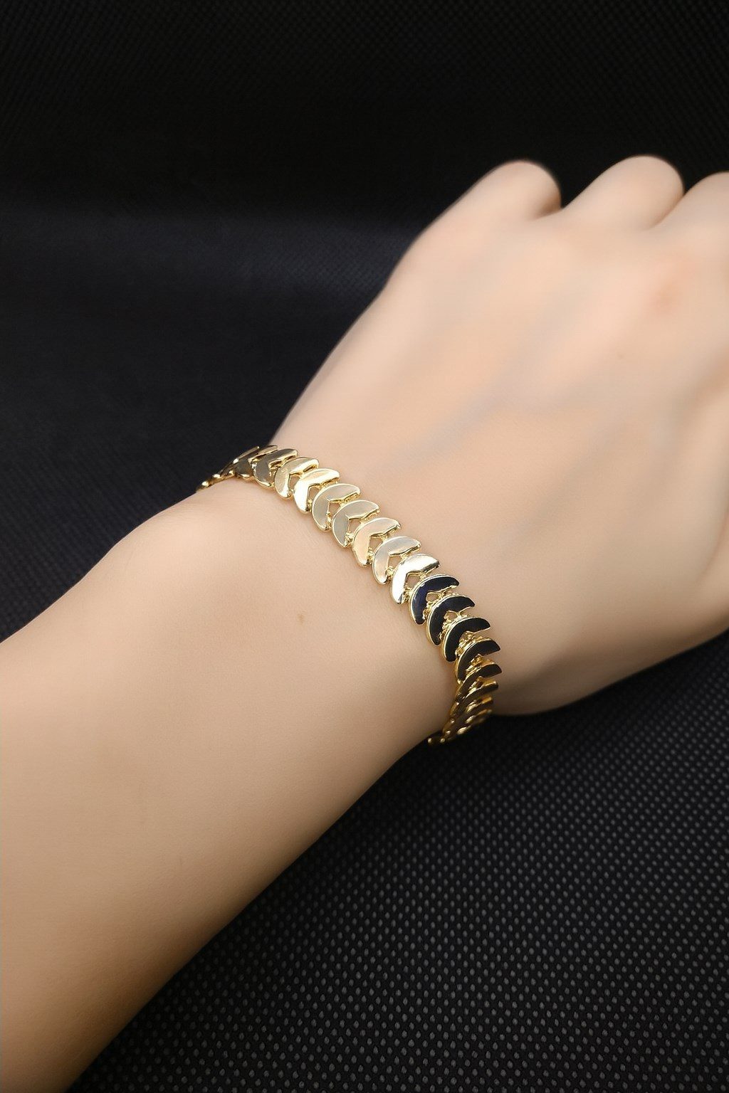Toptan Balık Kılçığı Yassı Gold Kaplama Künye Kılçık Bileklik – 454