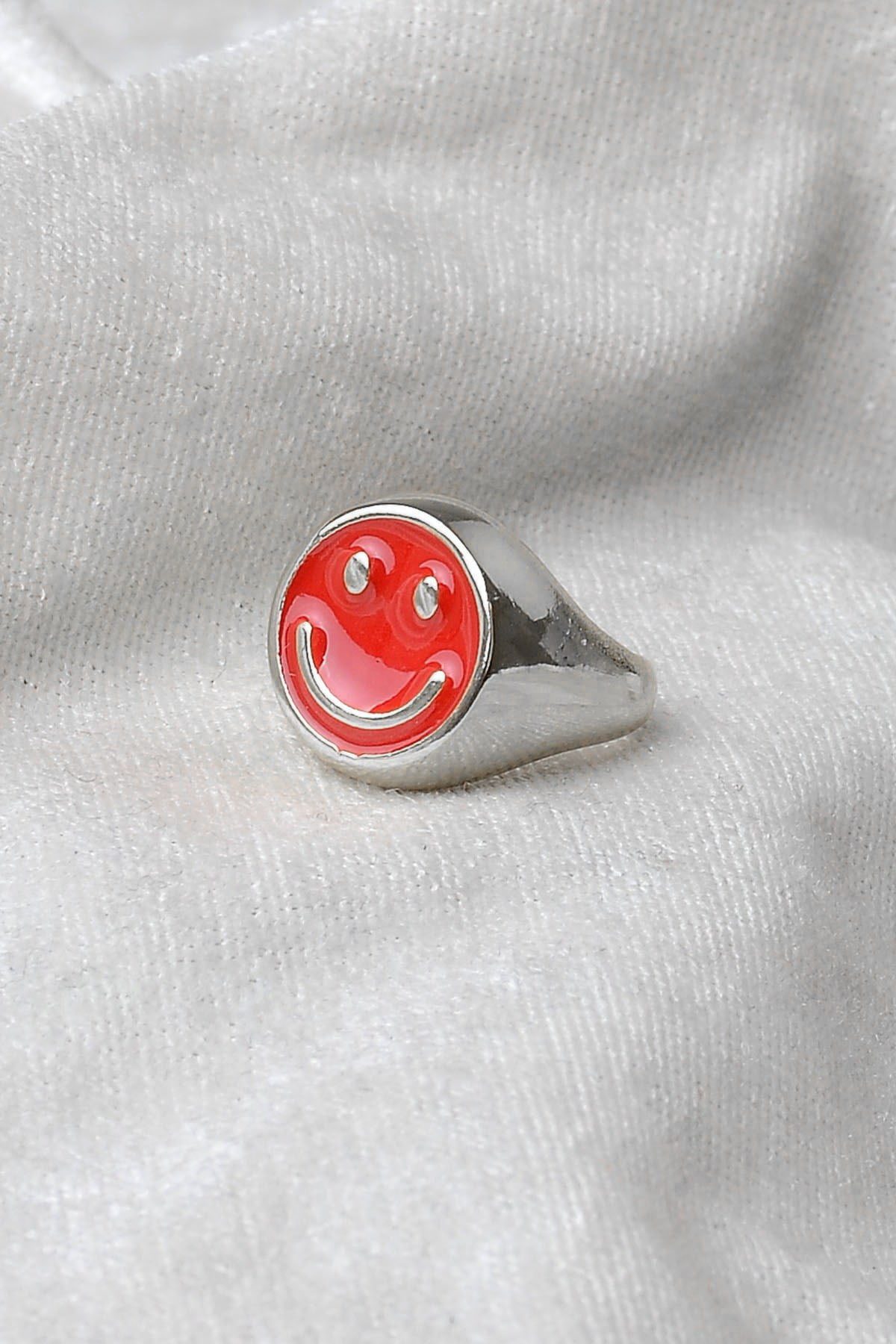 Toptan Gümüş Kaplama Kırmızı Renkli Ayarlanabilir Gülen Yüz Surat Smile Yüzük – 2296
