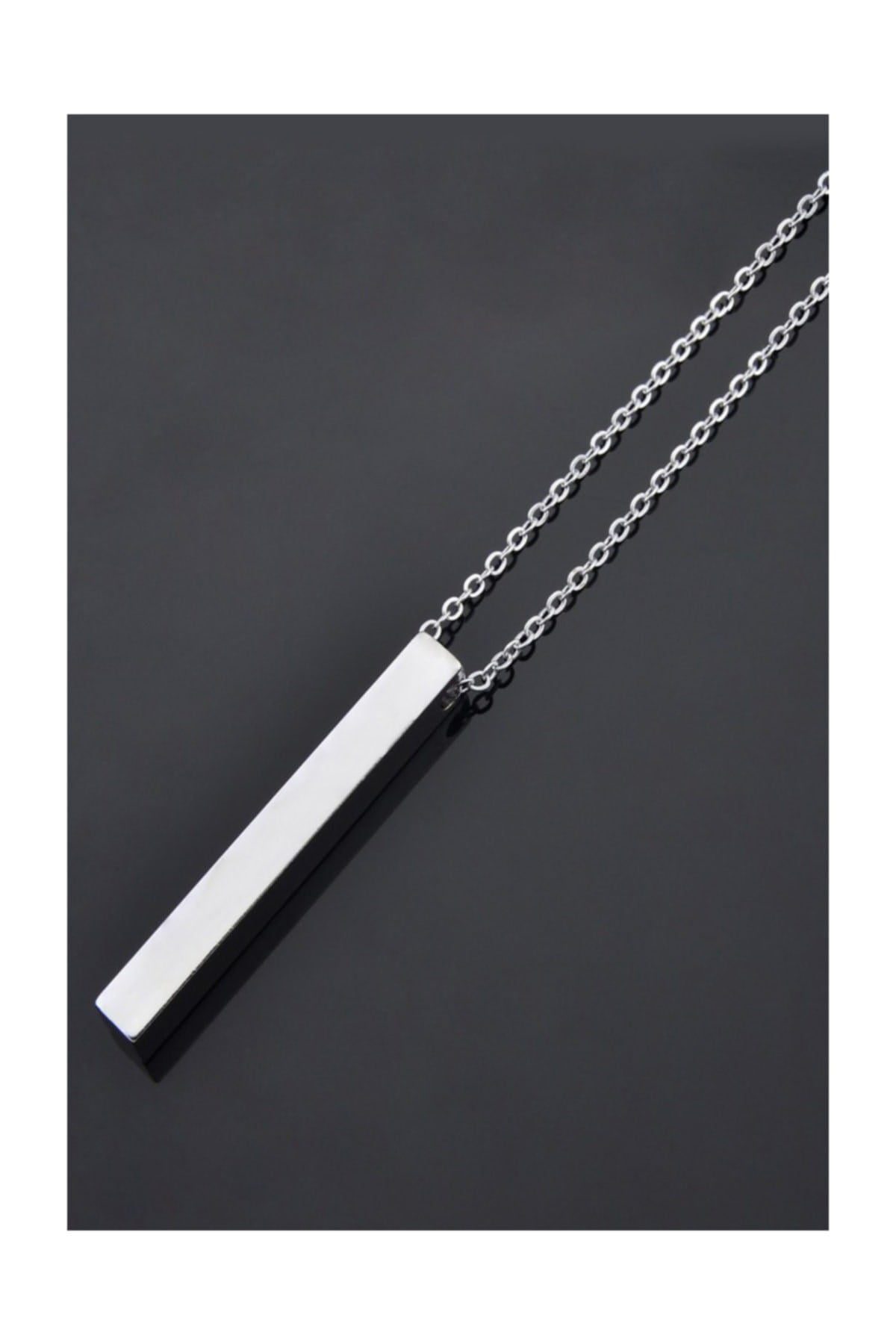Toptan Unisex Gümüş Kaplamalı Çubuk Uzun Bar Dikdörtgen Kolye 70 Cm
