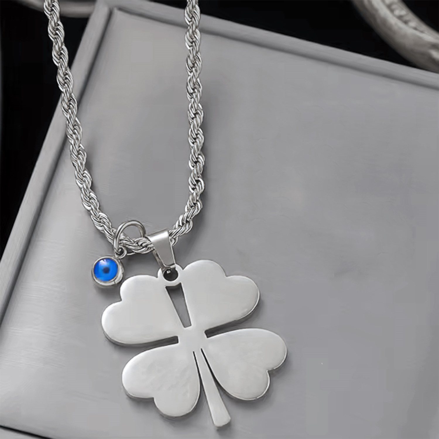 Toptan Gümüş Rengi Yazı Yazılabilen Burgu Zincir Yonca 45 Cm Vip Solmaz Kararmaz Çelik Kolye – 3040