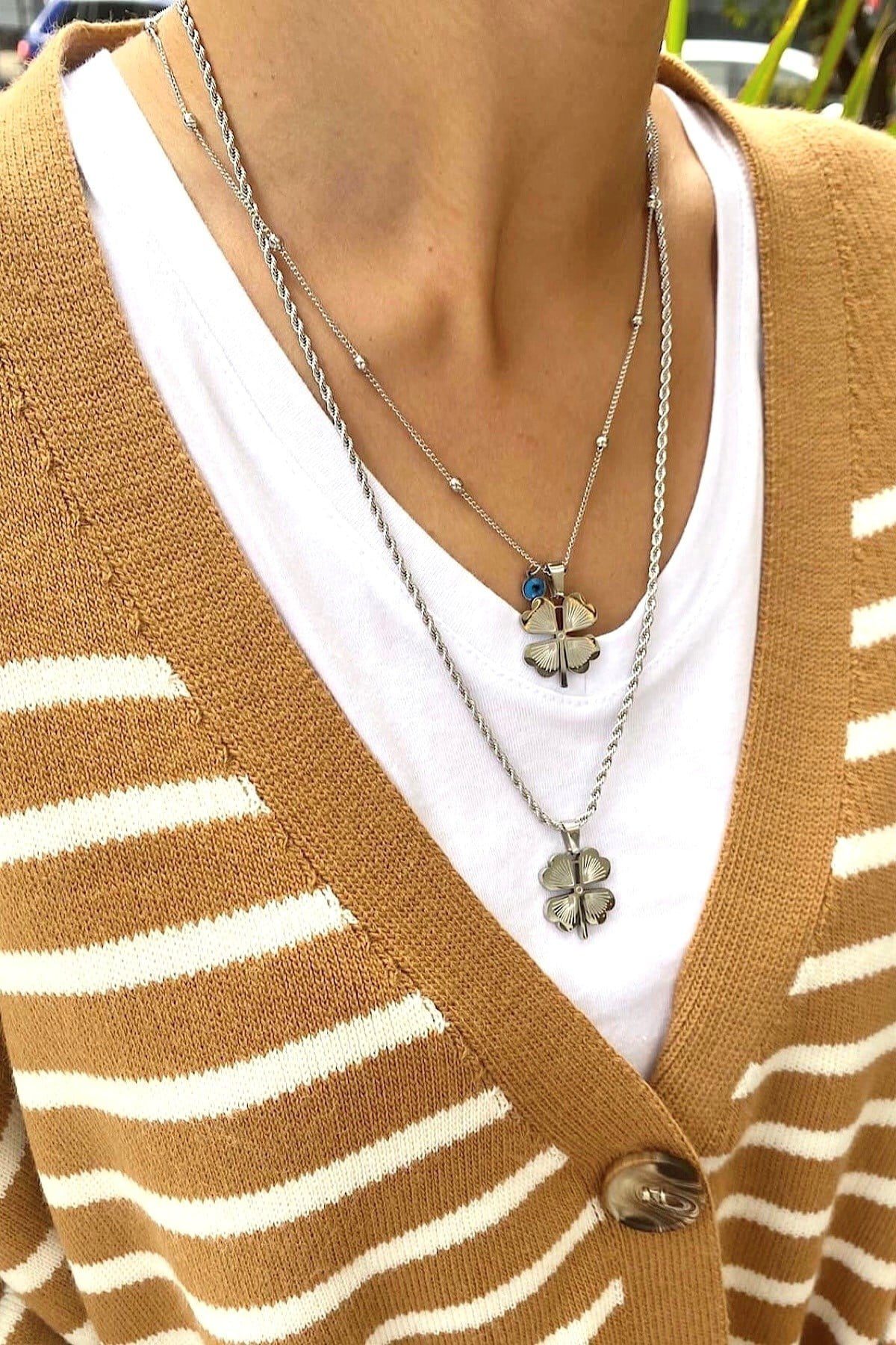 Toptan Gümüş Renk 4 Yapraklı Yonca Arpa Zincir – 2402