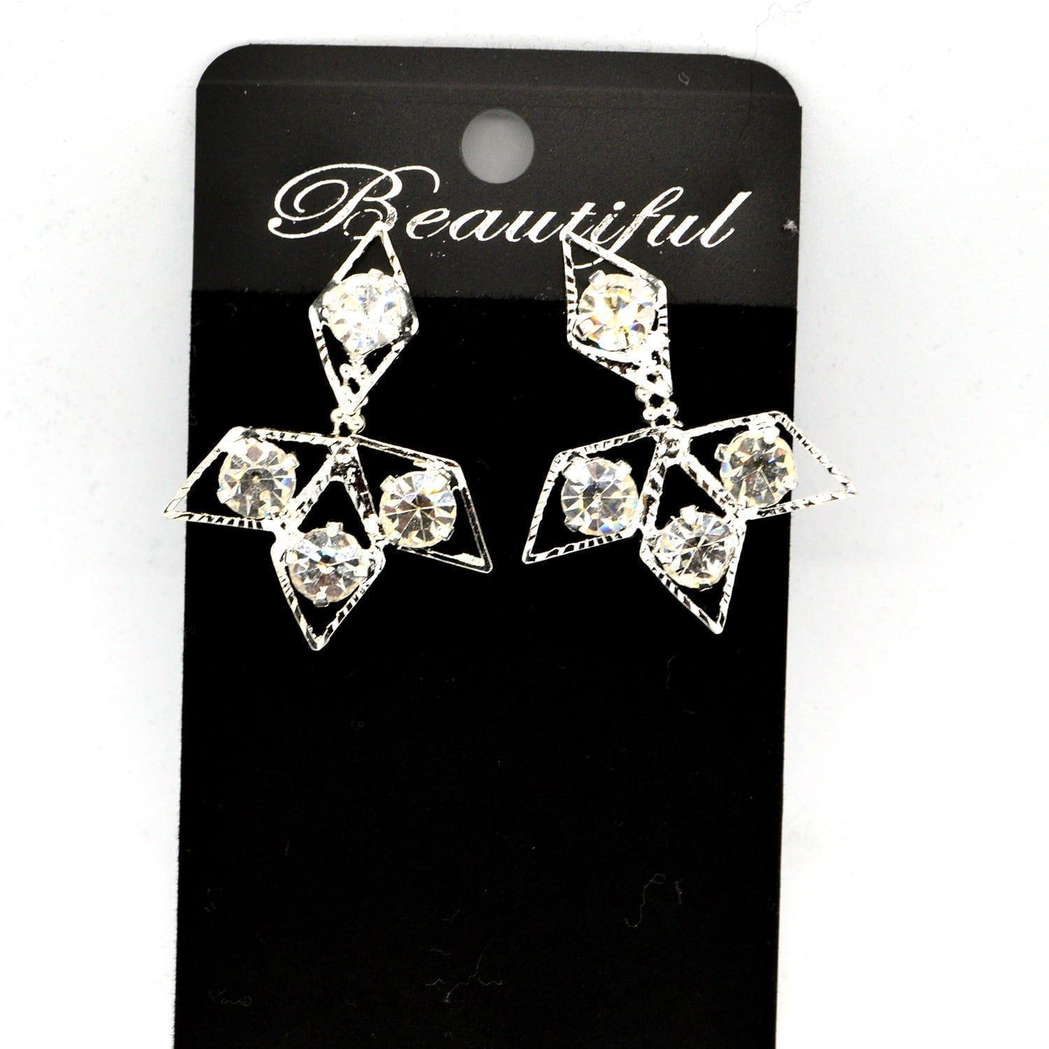 Toptan Gümüş Renk Abiye Baklava Üç Baklava Desenli Şerit Küpe 823