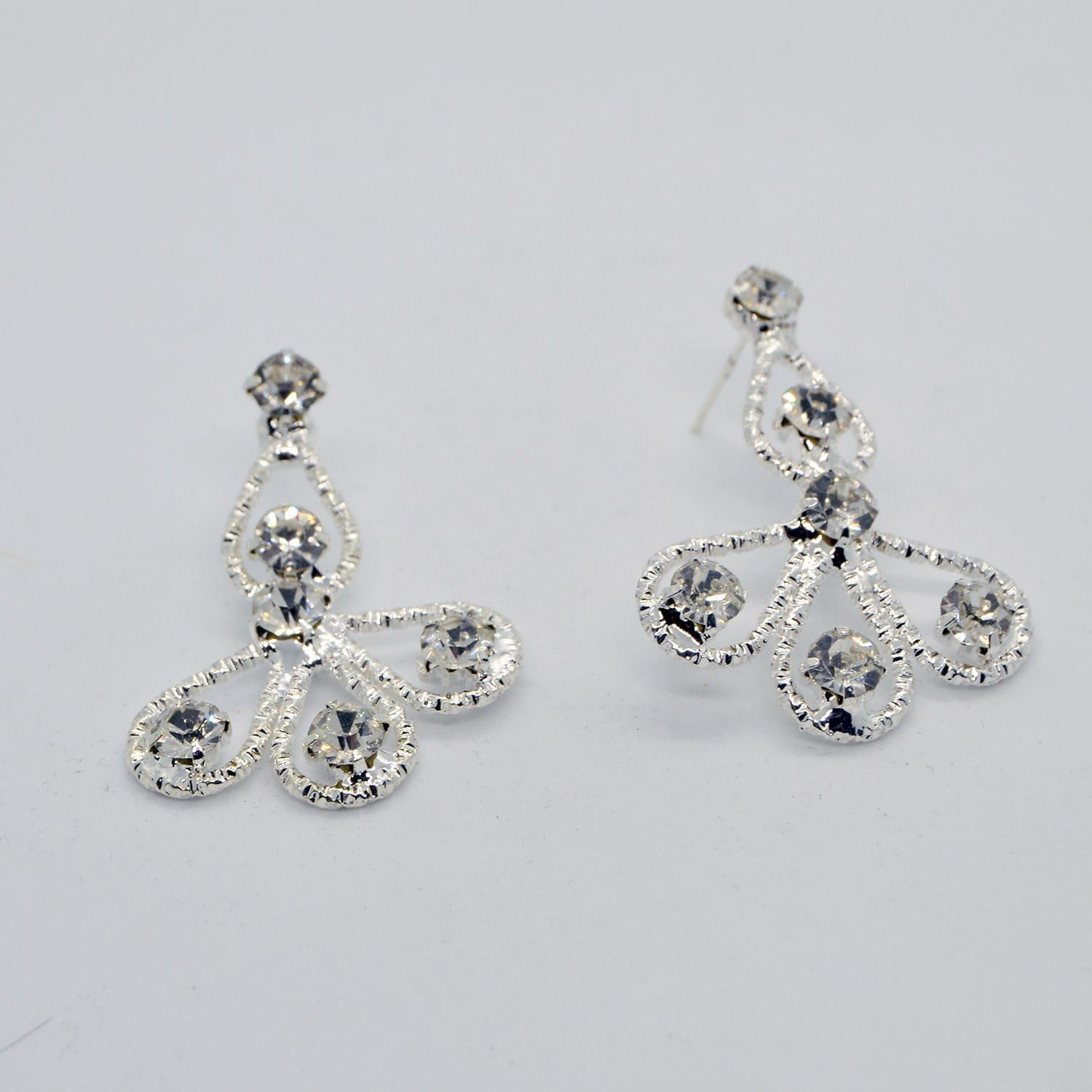 Toptan Gümüş Renk Abiye Damla Bitişik Üçlü Damla Desenli Şerit Küpe 830