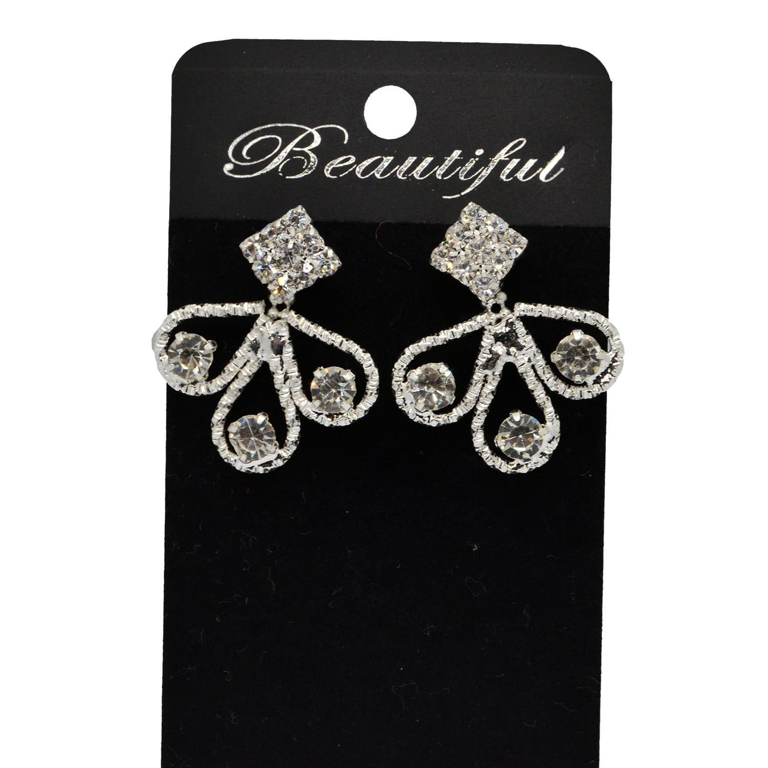 Toptan Gümüş Renk Abiye Kare Meşale Desenli Şerit Küpe 829