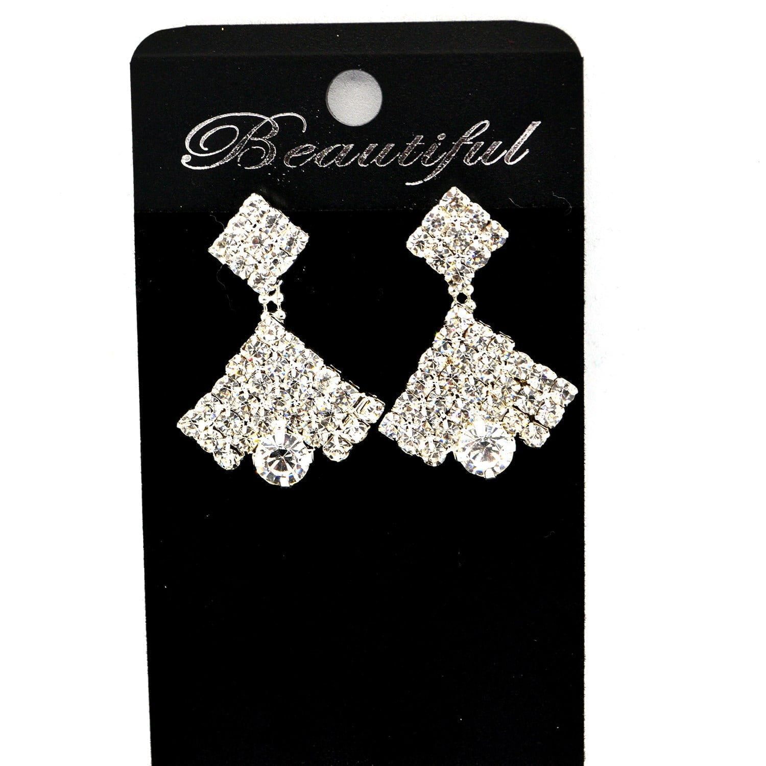 Toptan Gümüş Renk Abiye Kare Ok Desenli Şerit Küpe 817