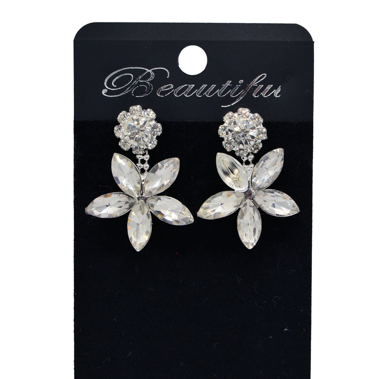 Toptan Gümüş Renk Abiye Yuvarlak Mekik Yıldız Desenli Şerit Küpe 820