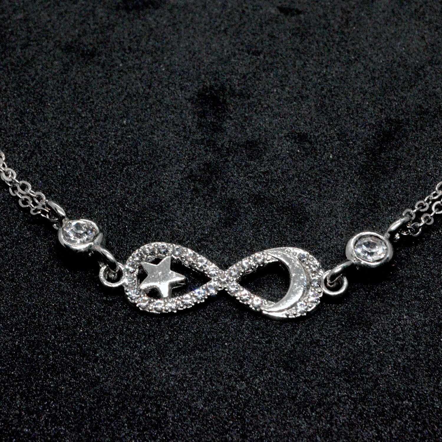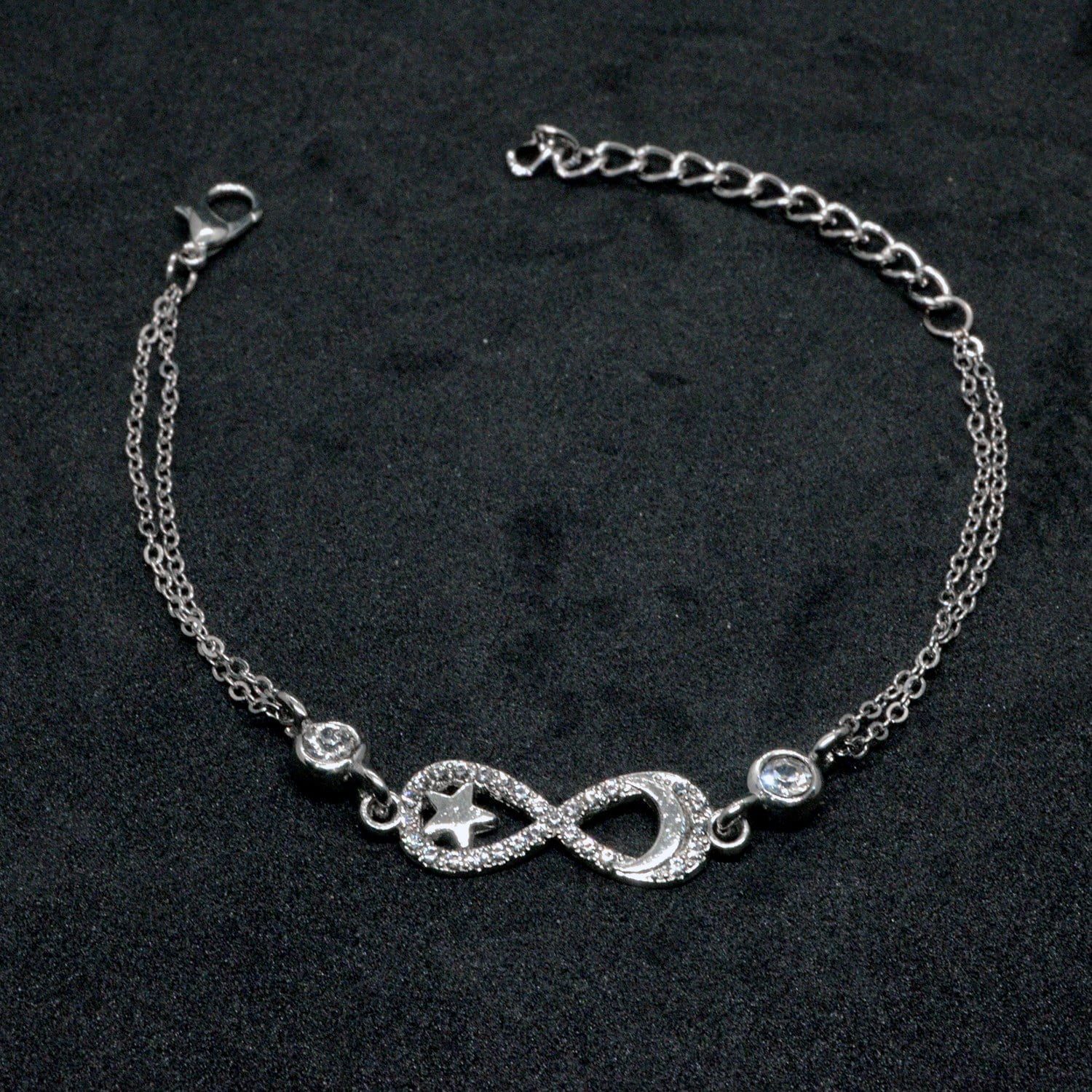 Toptan Gümüş Renk Ay Yıldız Sonsuzluk Figürlü Çift Zincirli Bileklik 896