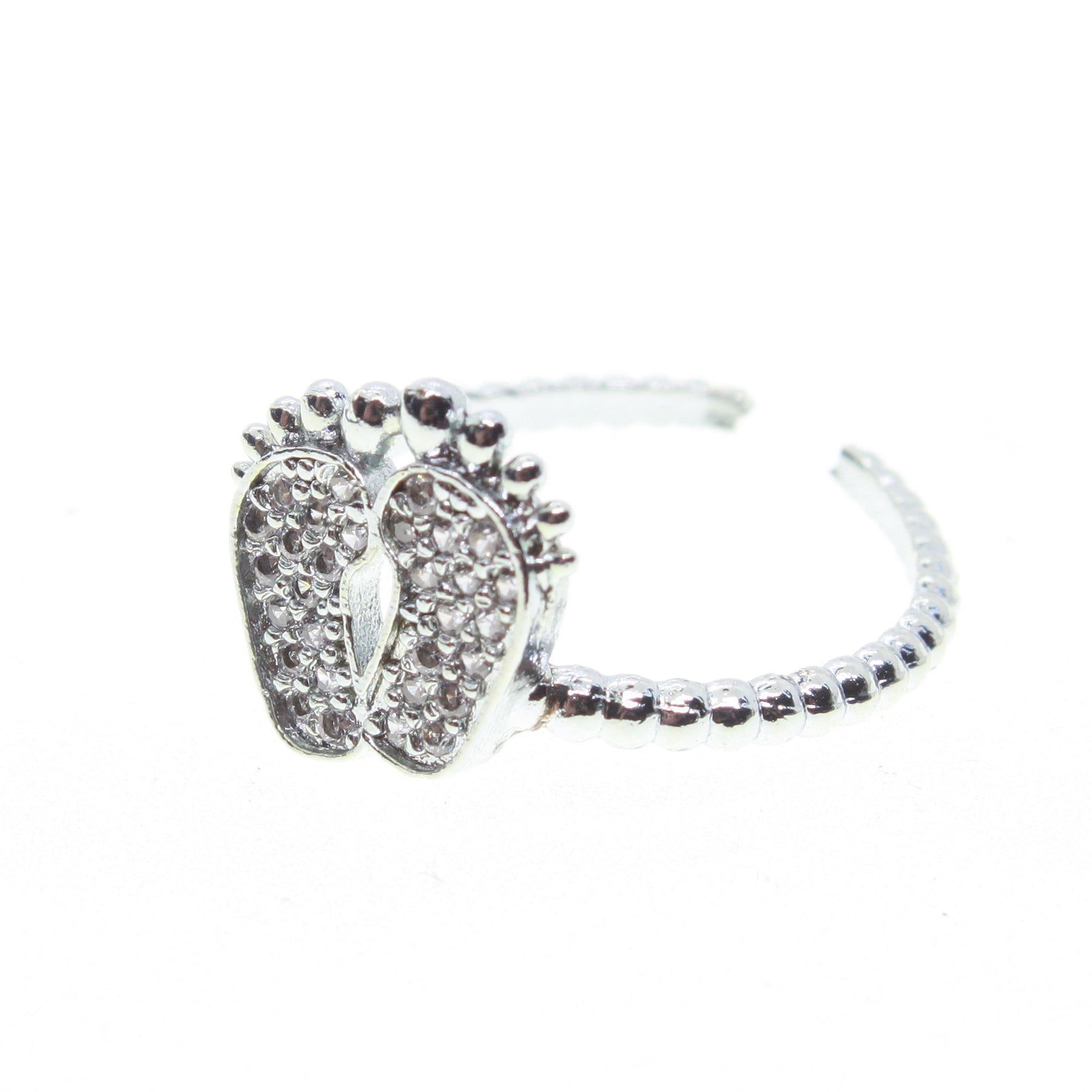 Toptan Gümüş Renk Ayak Motif Zirkon Yüzük Ayarlabilir Her Parmağa Olur – 1500