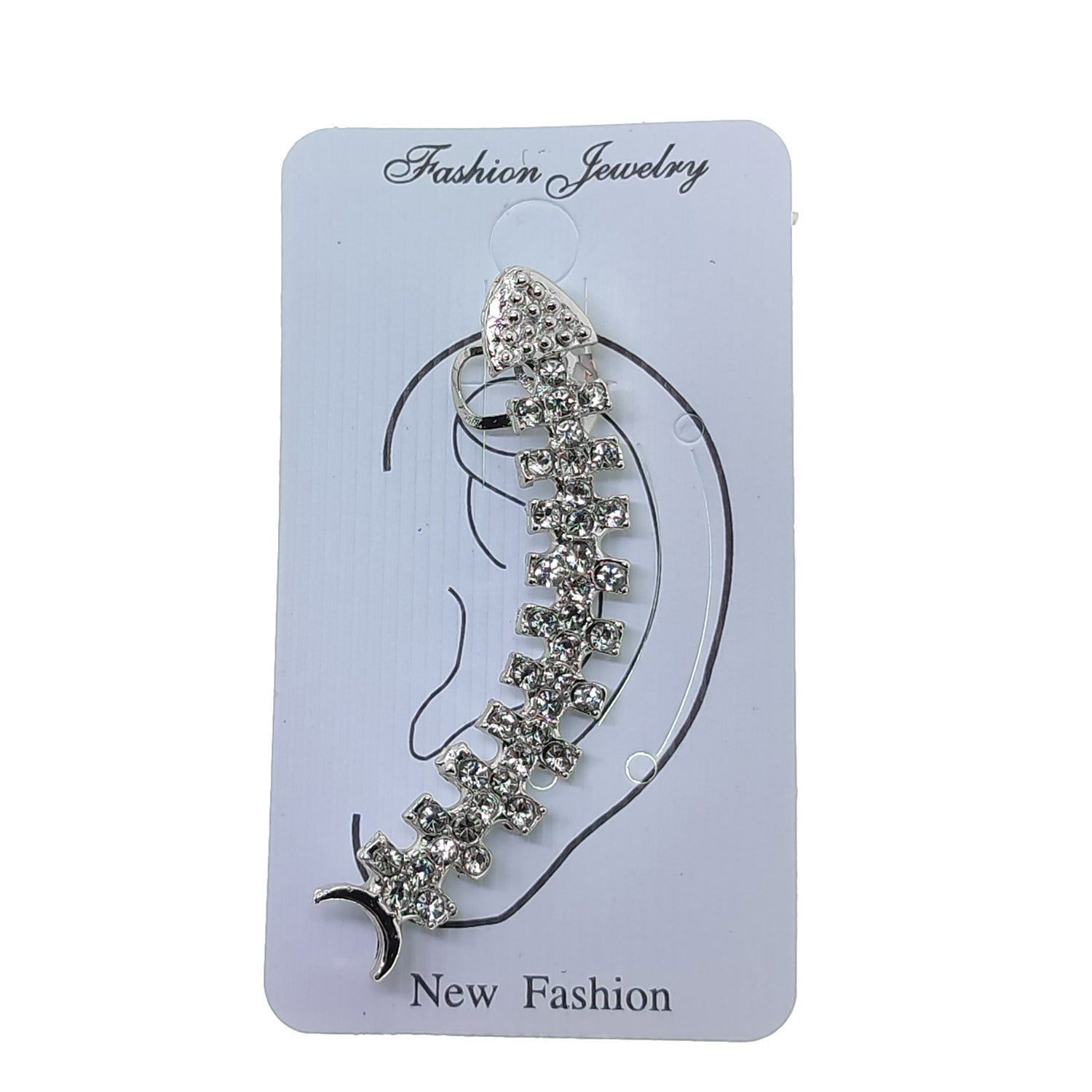 Toptan Gümüş Renk Balık Kılçık Model Taşlı Kıkırdak Küpe – 2393