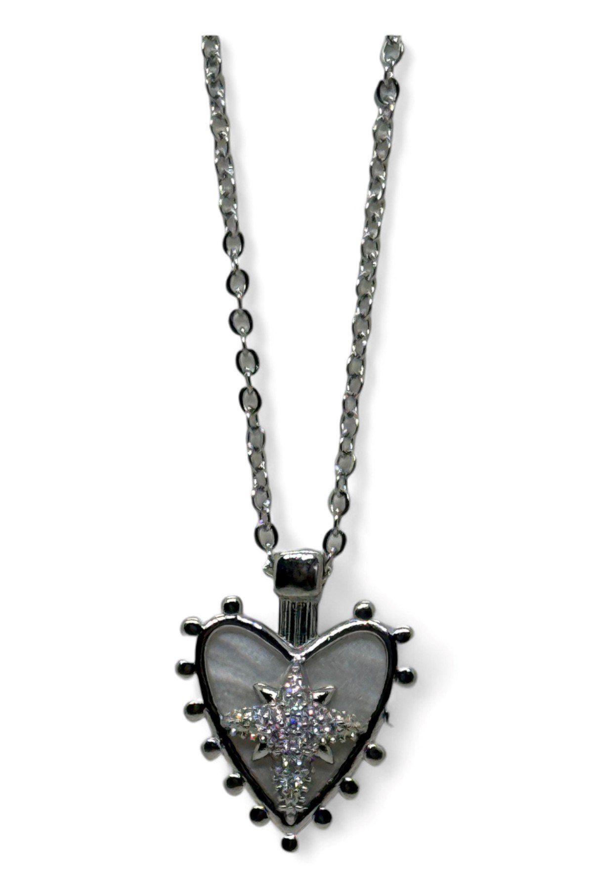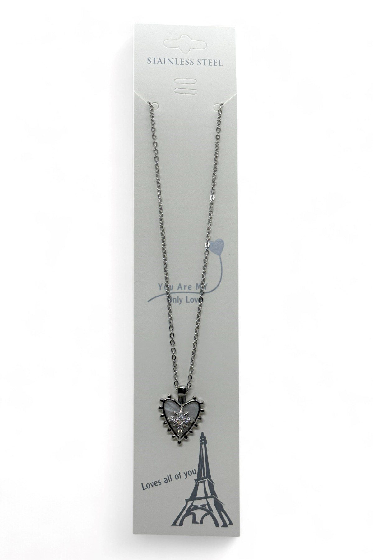 Toptan Gümüş Renk Beyaz Sedef Kalp Kutup Yıldızı Model Sf Zincir Çelik Kolye- 3772