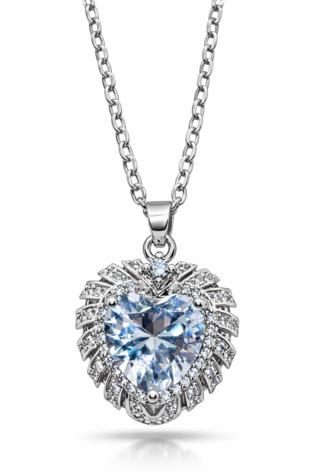 Toptan Gümüş Renk Beyaz Taş Kalp Model Sf Zincir Çelik Kolye – 3853