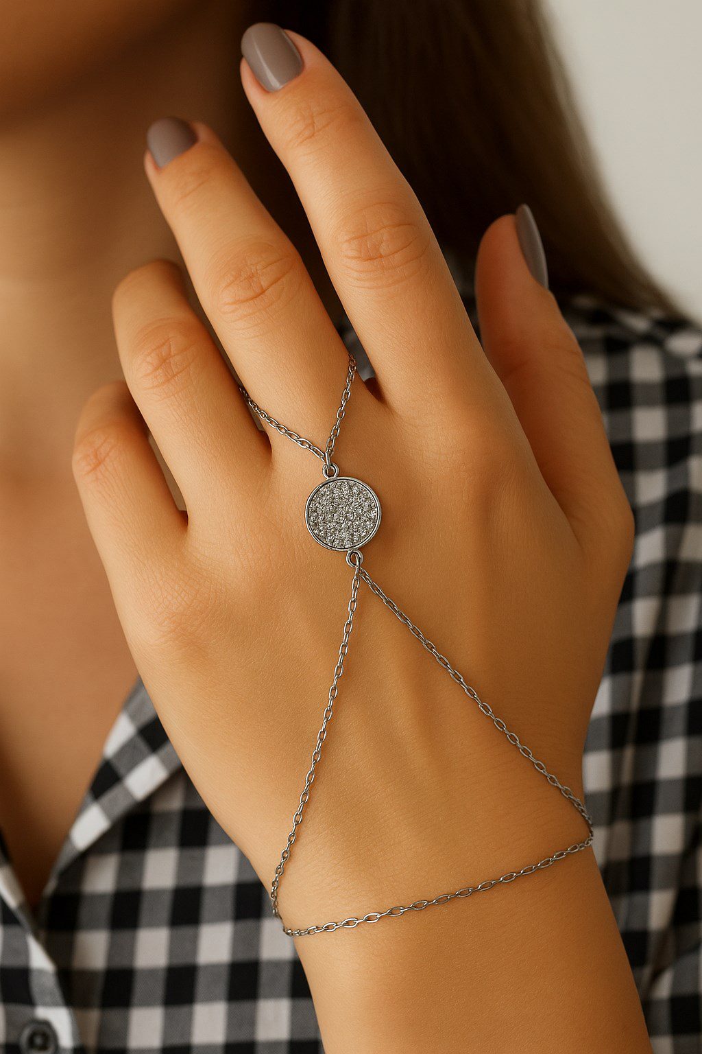 Toptan Gümüş Renk Beyaz Taş Yuvarlak Çelik Şahmeran – 3558